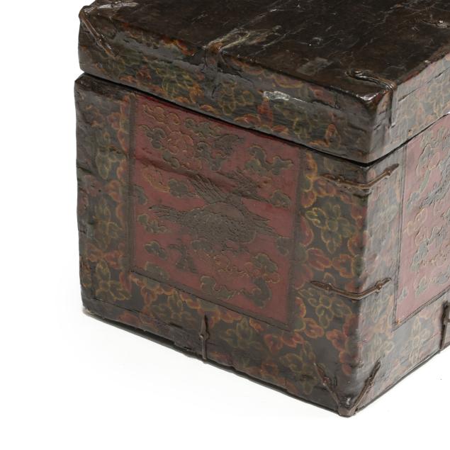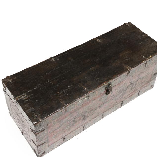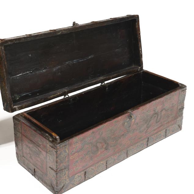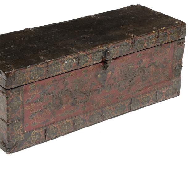 Tibetan Lacquered Trunk Decorated with Dragons