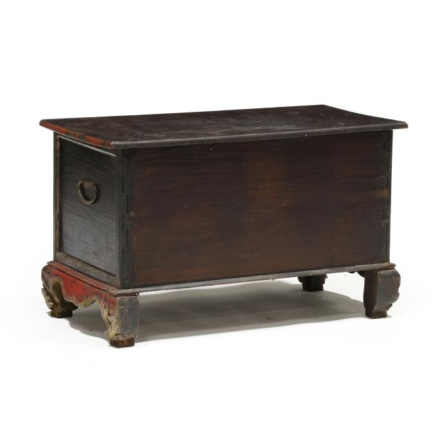 From the Estate of the late Susan C. Frankenberg, Hillsborough, North Carolina Old surface with attractive mellow patina; no keys; missing two metal escutcheon covers.