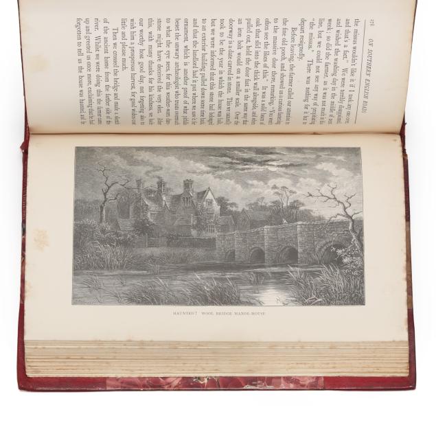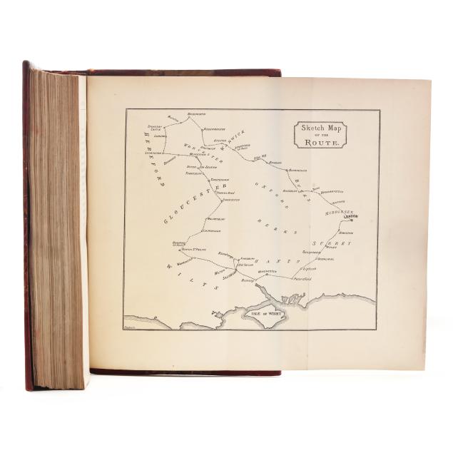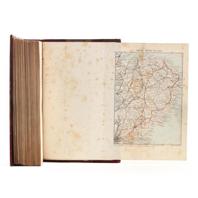 London: Richard Bentley & Son, 1884-1896; first editions; (7) volumes uniformly bound in half red leather over marbled paper-covered boards, spines with gilt-lettered and decorated compartments, with marbled endpapers, ribbon bookmarks, and top edge gilt; stamped "BOUND BY J. LARKINS" on first free endpaper verso; 8vo; each with half-title and frontispiece with tissue guard, and all but one with illustrations by the author, with most illustrations full-page and a few volumes with folding maps/plans. To include the following titles: