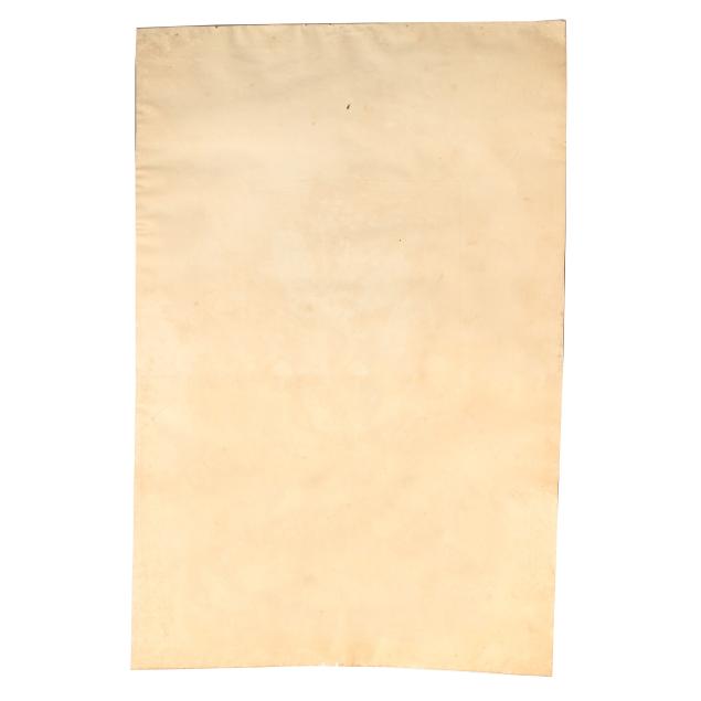 Image in good condition; some slight color fading; general sheet wear, including toning, some stains, two small margin holes, and edge nicks.