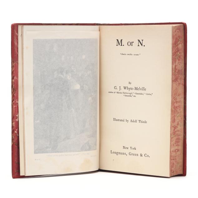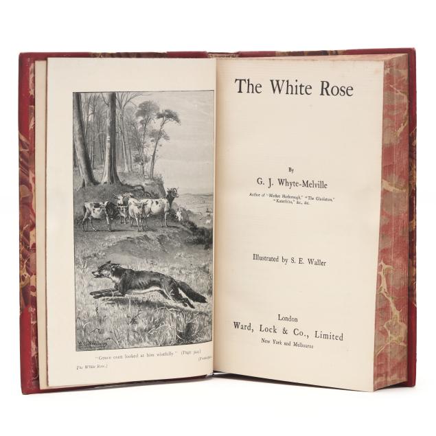 (5) titles by G. J. Whyte-Melville; various illustrators; London: Ward, Lock & Co. and New York: Longmans, Green & Co., [n.d.]; uniformly bound in half red calf over marbled paper-covered boards, spines gilt-stamped with raised bands, with marbled endpapers and all edges marbled; all small 8vo, illustrated, and with frontispiece; to include: