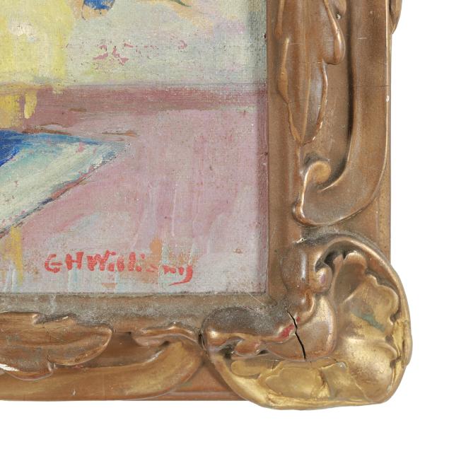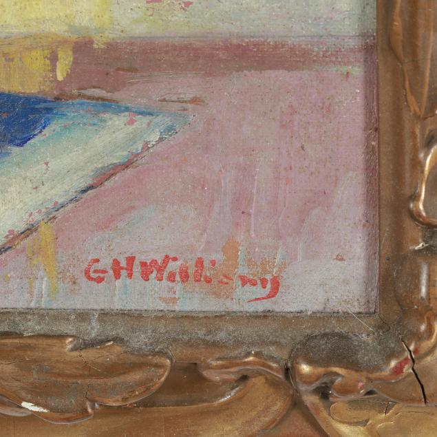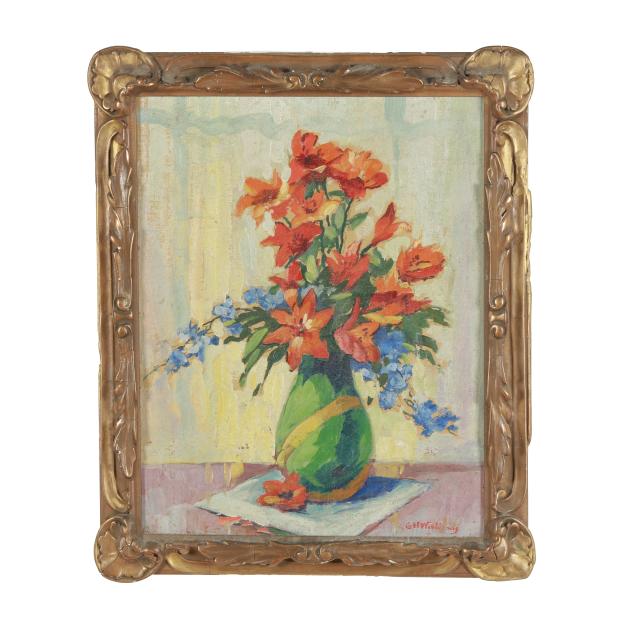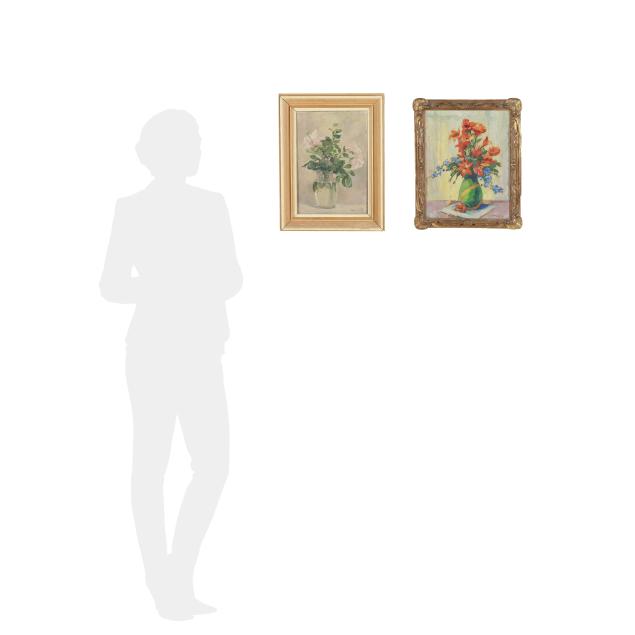 The first, G. H. Williams (American, 20th Century), still life with orange flowers and blue bonnets, oil on artist board, signed at lower right, presented in a giltwood frame; the second, Jaroslav Jares (Czech, 1889-1967),