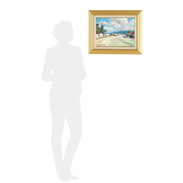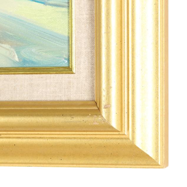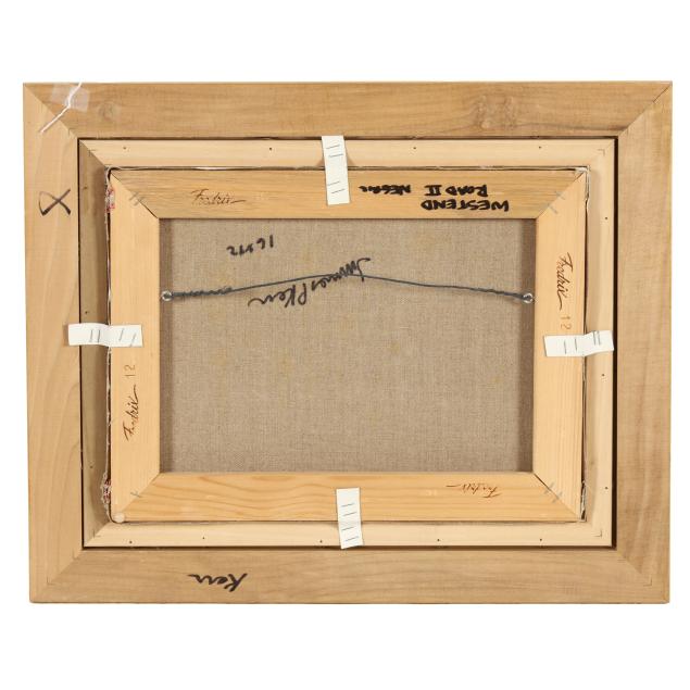 Oil on linen, signed at lower left, inscribed to verso stretcher, presented in a giltwood frame.
