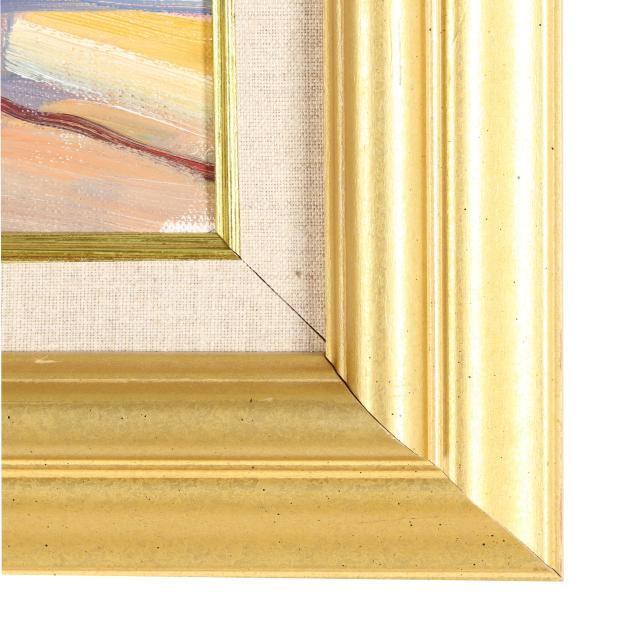 Oil on linen, signed at lower left, inscribed to verso and stretcher, presented in a giltwood frame.