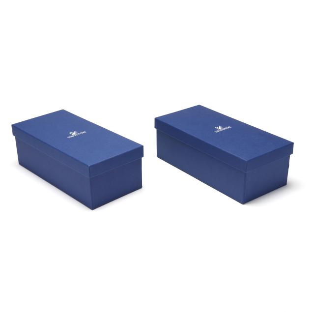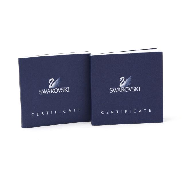 Austria, both with multicolor crystal on detachable silvered metal stems, both with Swarovski mark and presented with original boxes.