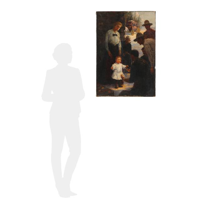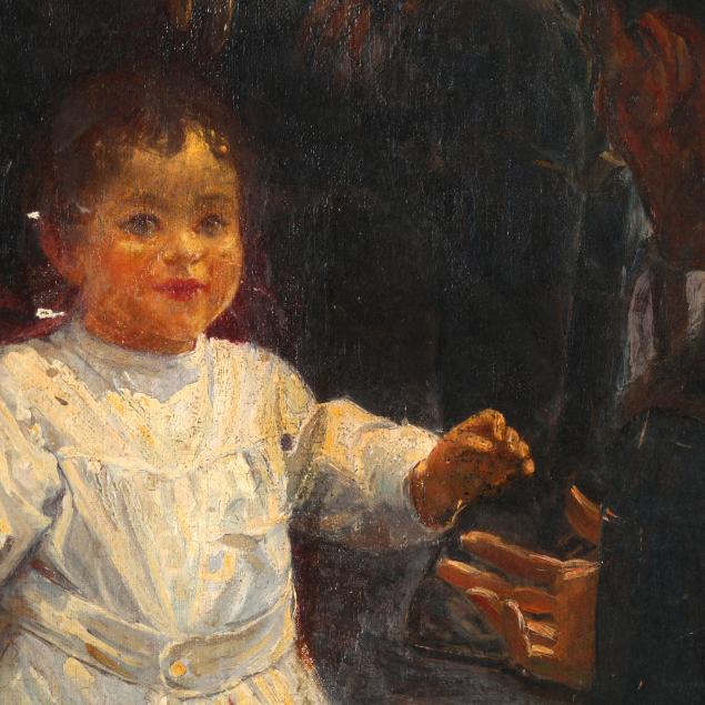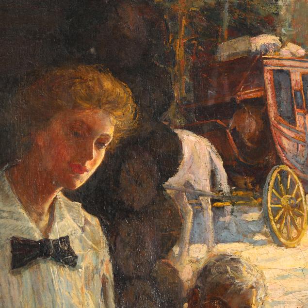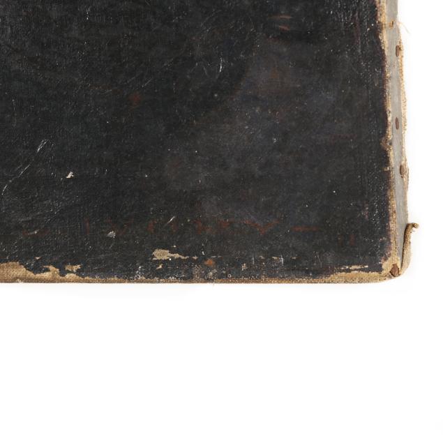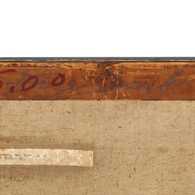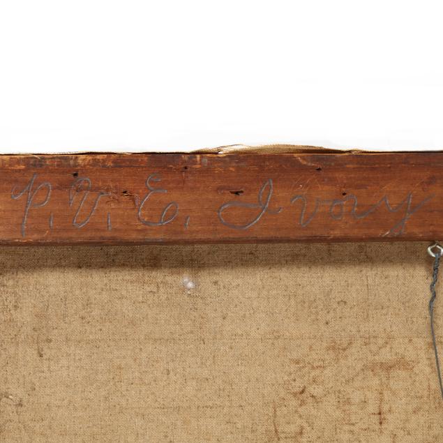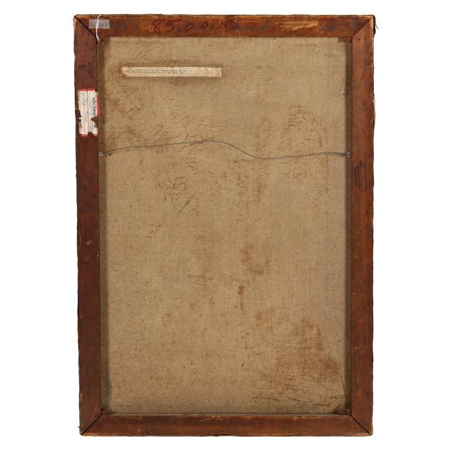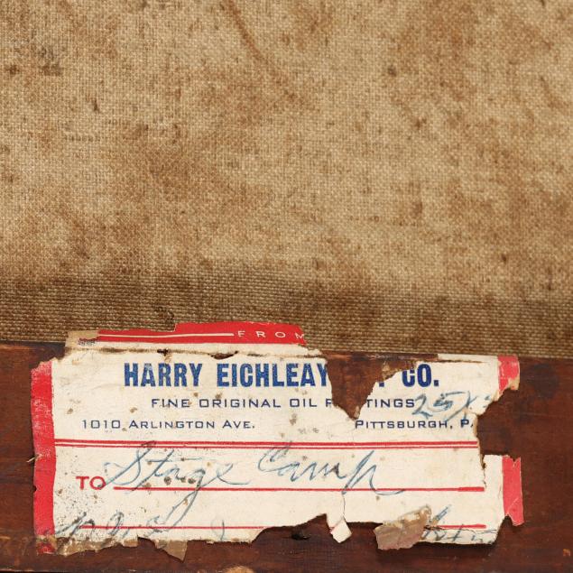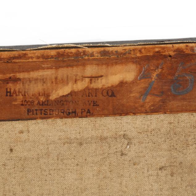 Oil on canvas, signed at lower right, the stretchers retaining a label and bearing the stamp of Harry Eichleay Art Co. of Pittsburgh, unframed.