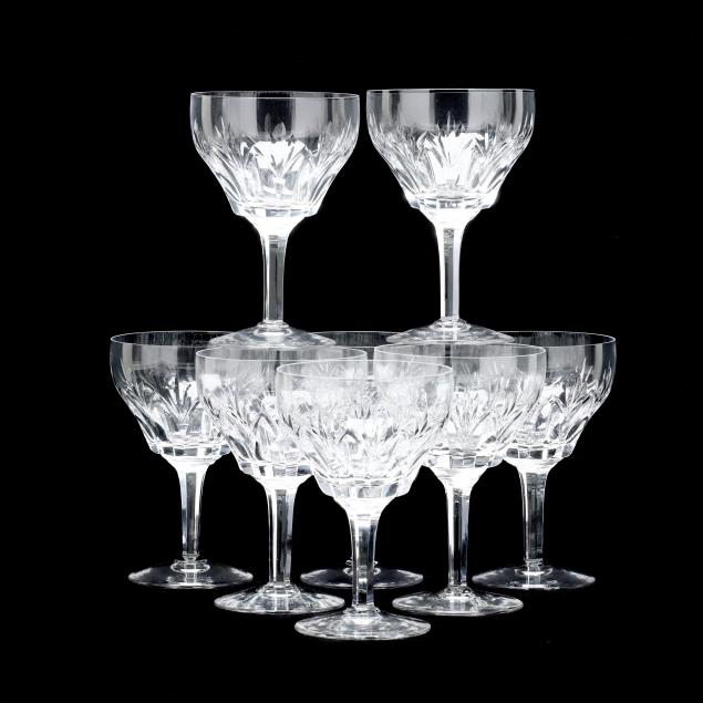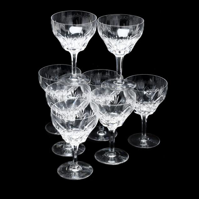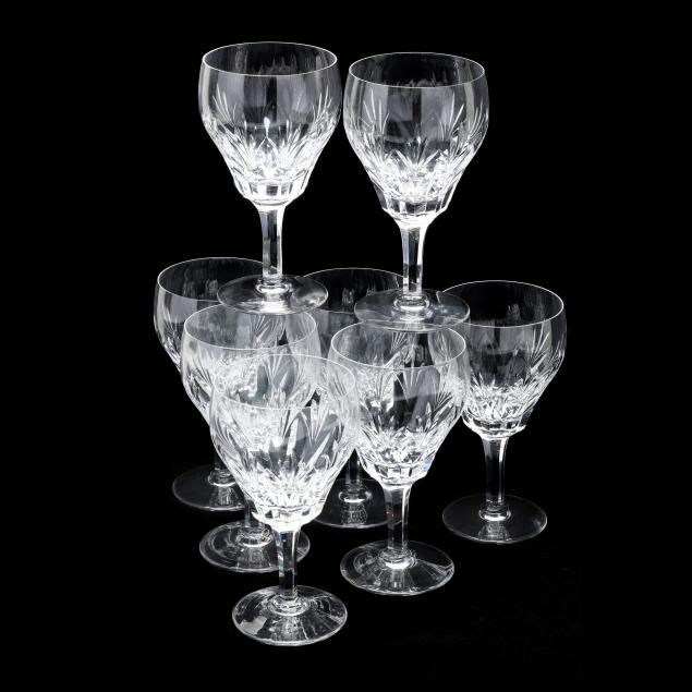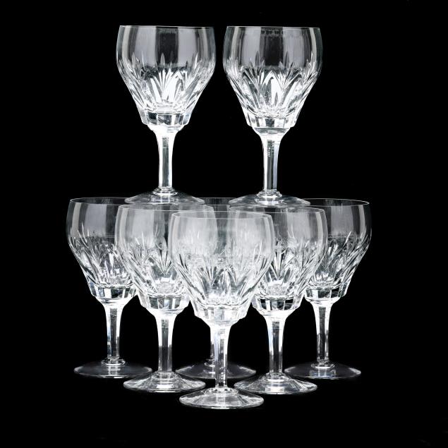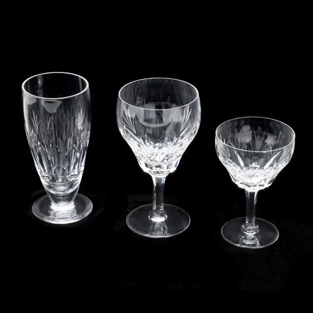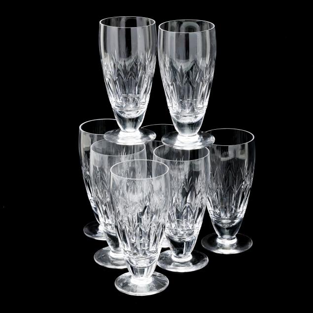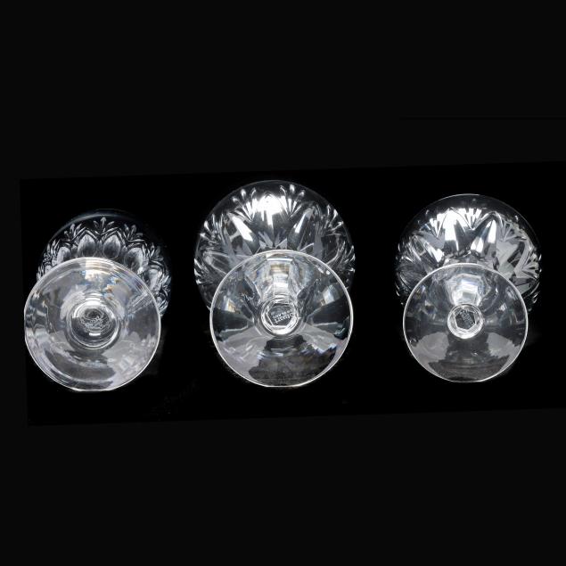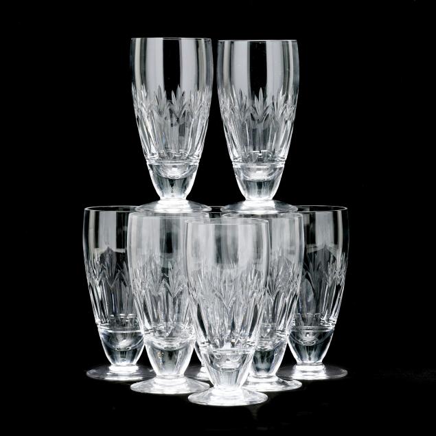 England, active pattern between 1955-1975, (24) pieces to include (8) water goblets (6 1/2 in.); (8) tall sherbet glasses (5 1/8 in.); and (8) iced tea glasses (6 3/8 in.), all marked to underside.