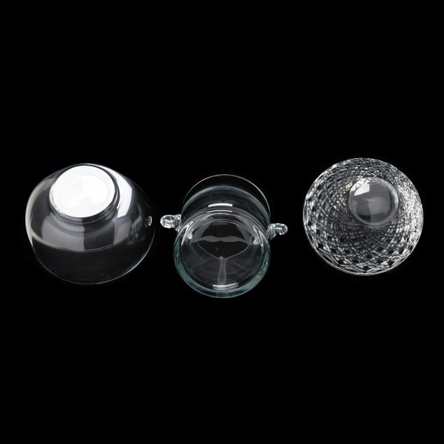 Late 20th century, a criss-cross cut glass bowl (5 1/8 x 9 1/2 in.); a