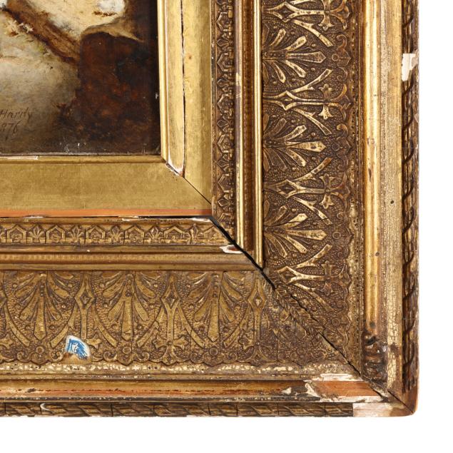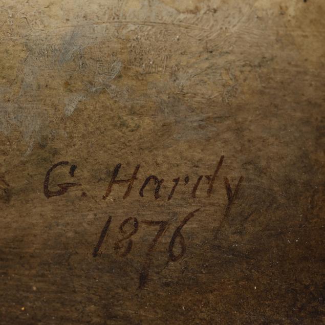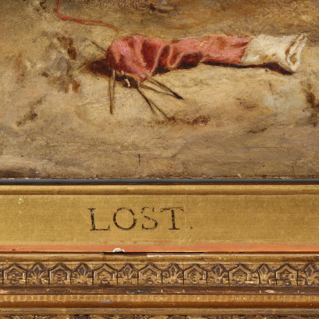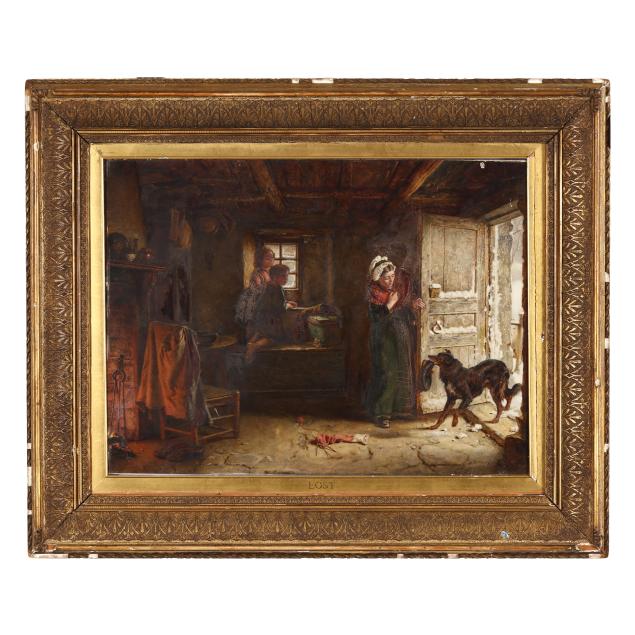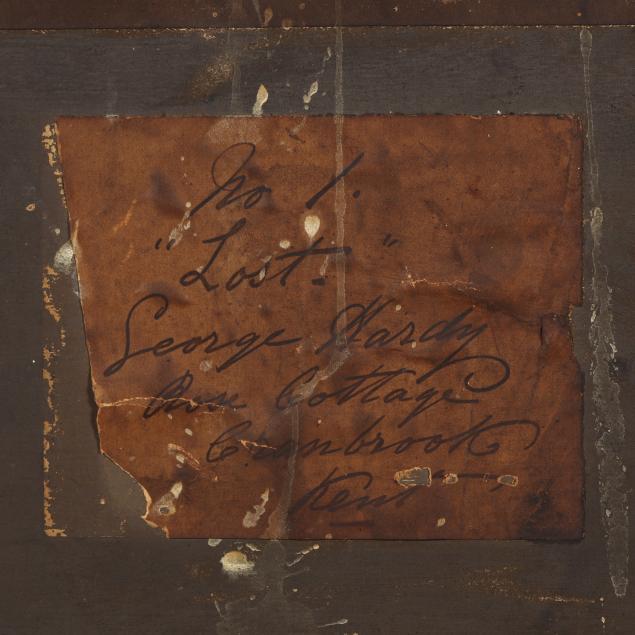 Oil on panel, 1876, signed and dated at lower right, retaining a label to verso inscribed "No. 1 / 'Lost' / George Hardy / Rose Cottage / Cranbrook / Kent," presented in a period gilt composition frame.