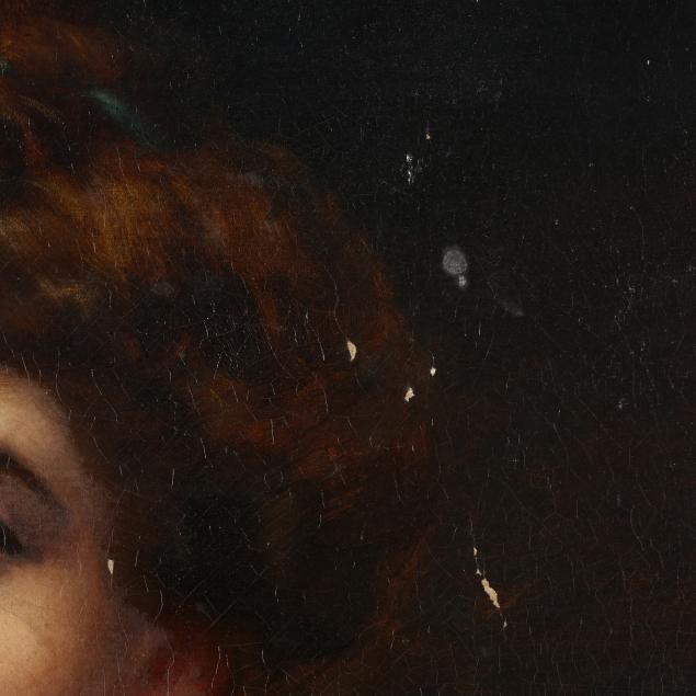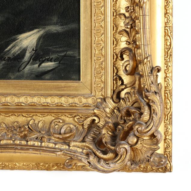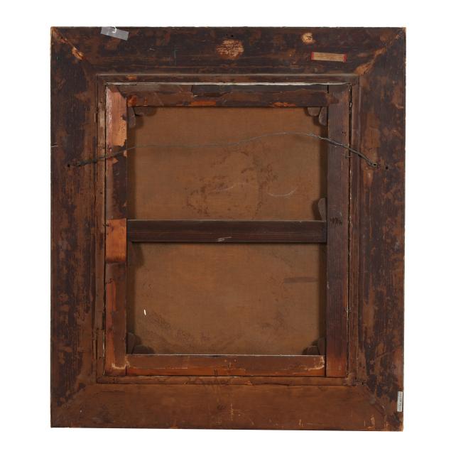 Oil on canvas, signed at lower right, presented in a ornate giltwood frame with gallery plaque affixed at lower center.