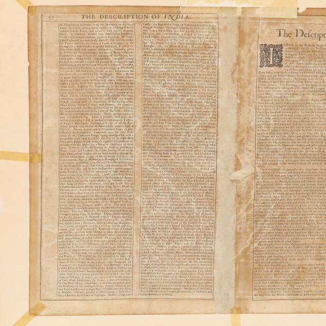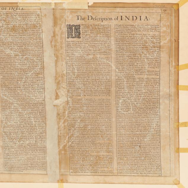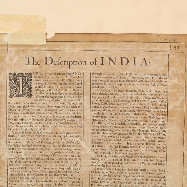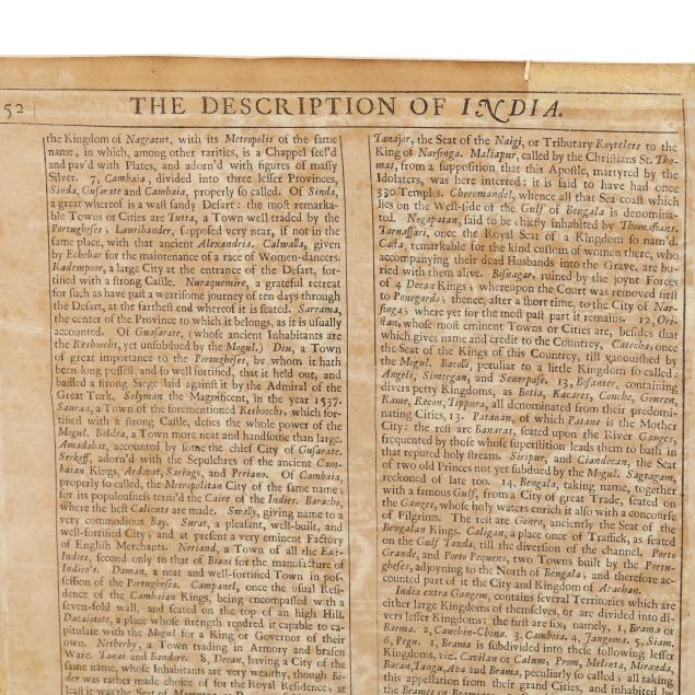 The Description of India printed in double-column format; presented behind a mat in a mid-century giltwood frame.