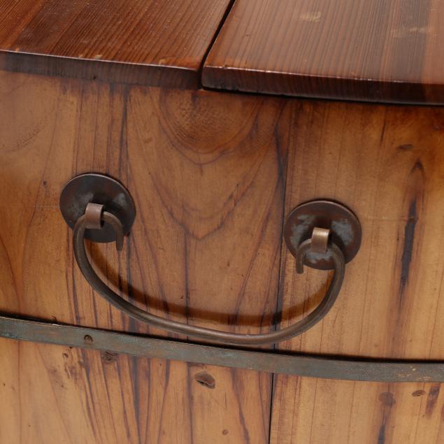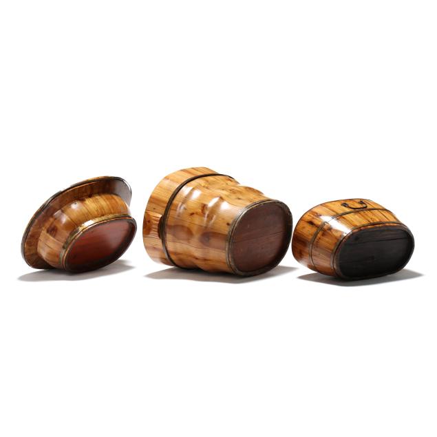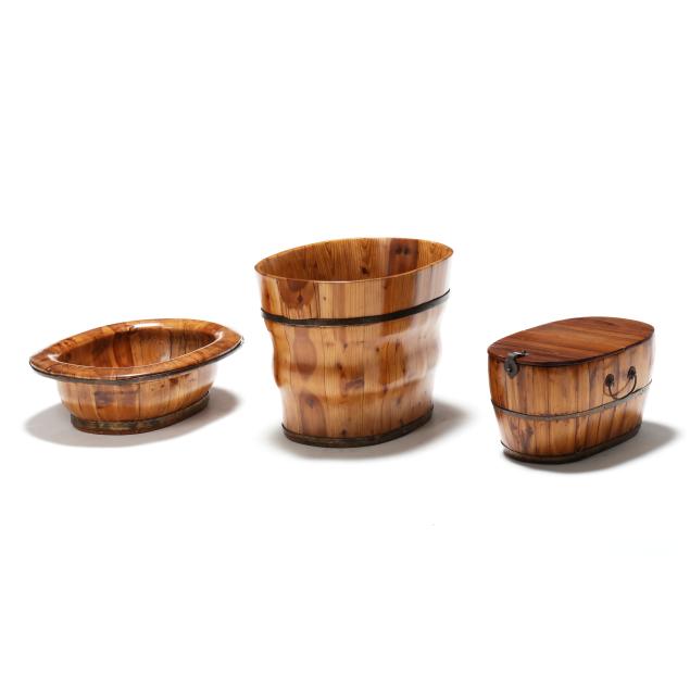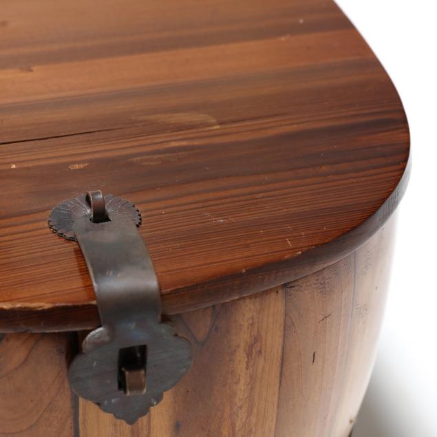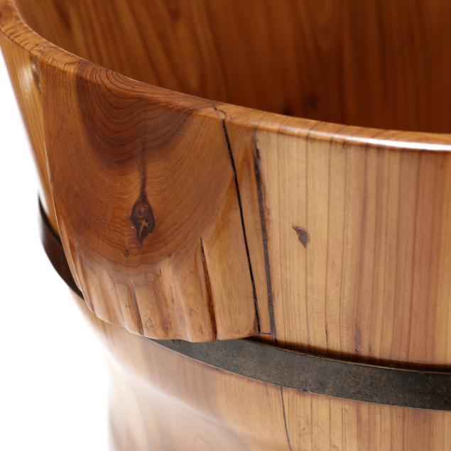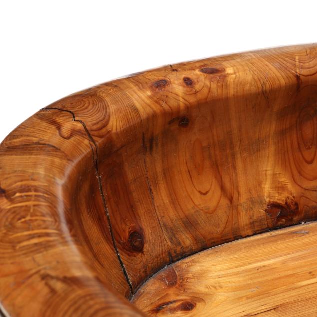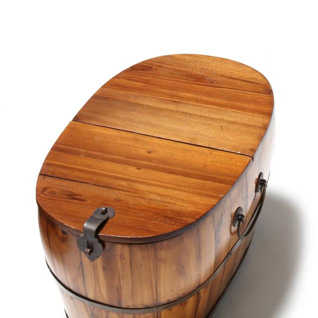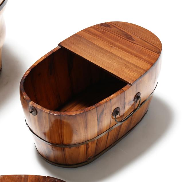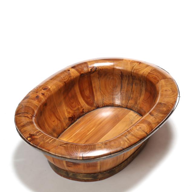 Property of a Chapel Hill Gentleman Crack along removable lid to oval box; crack running from rim to base of smaller oval basin and a few smaller cracks to rim; some looseness to brass mounts of both basins and signs of wear and aging to all brass mounts.