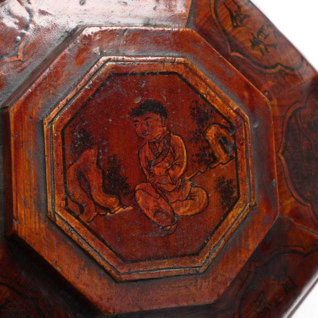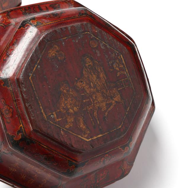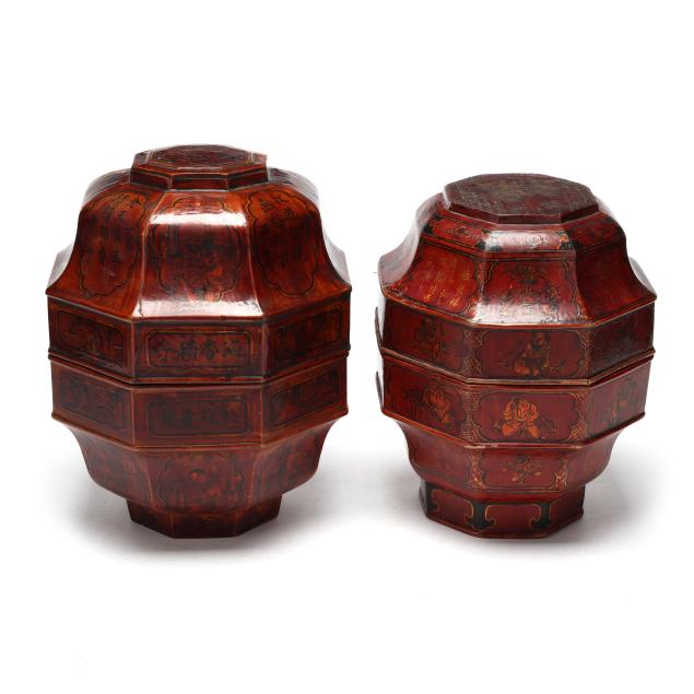 Property of a Chapel Hill Gentleman Small scattered scuffs, lacquer chips, and gilt rubbing to both; the shorter with looseness to applied wood strap at base of lid, possible small area of insect damage to top of lid, and scattered spotting to interior.