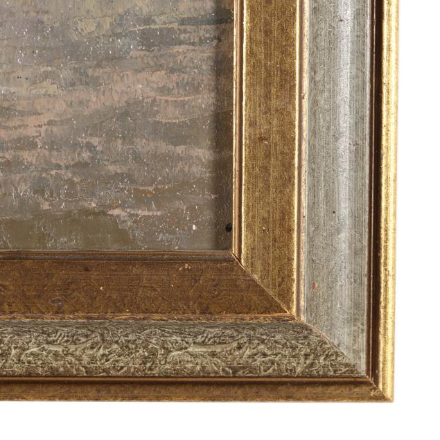 Oil on canvas, signed at lower right, presented in a gilt frame.