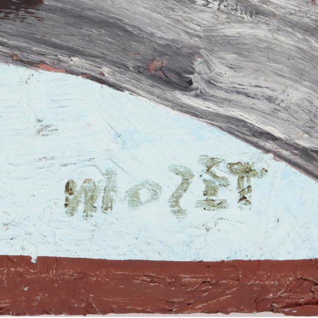From the Estate of the late Susan C. Frankenberg, Hillsborough, North Carolina Mose Tolliver was born to sharecroppers near Montgomery, Alabama. After a severe injury in the late 1960s, he turned to painting as a means to combat boredom and pain. Tolliver's work has been exhibited in the Smithsonian American Art Museum, Washington, D.C., the Metropolitan Museum of Art, New York, the American Folk Art Museum, New York, and the Montgomery Museum of Fine Arts, Montgomery, Alabama.