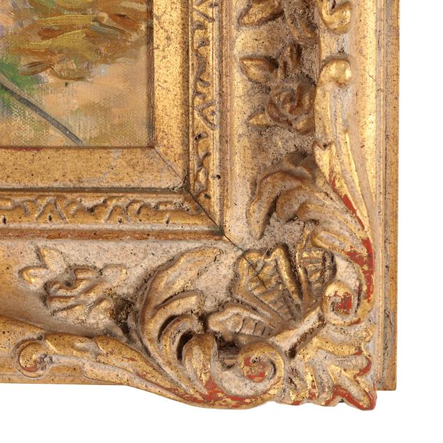 Oil on canvas, signed at lower left, presented in a carved giltwood frame.