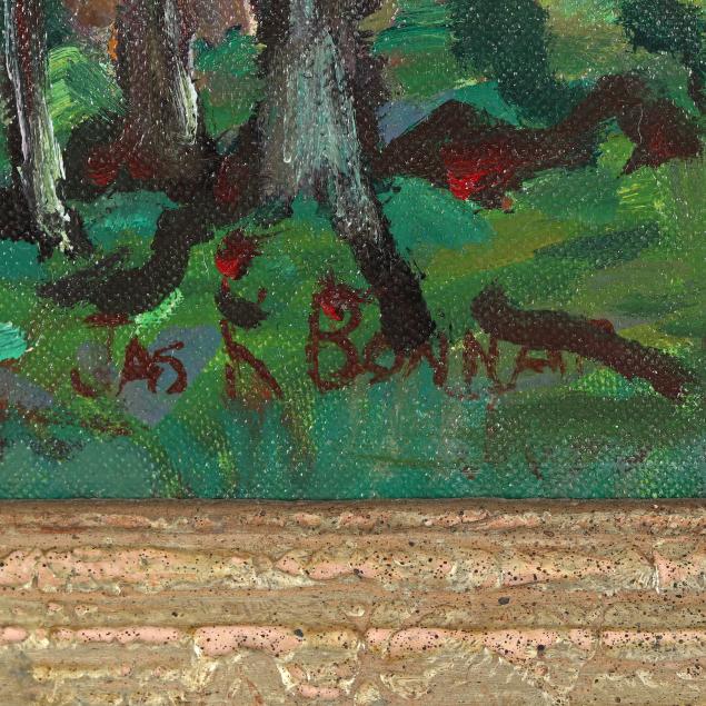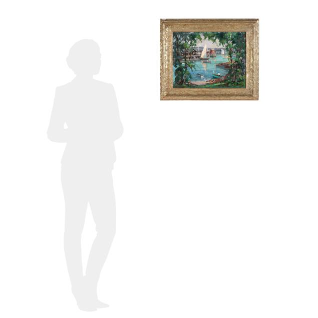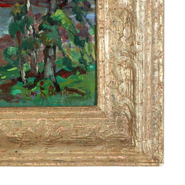 From the Estate of the late Susan C. Frankenberg, Hillsborough, North Carolina James King Bonnar was an American painter from Massachusetts known for his landscapes, marine scenes, and murals depicting New England harbors. Born in North Adams and based in Newtonville, he studied at the Massachusetts School of Art under Joseph DeCamp and Ernest Major. Bonnar was a central figure in the regional art community, founding the Newton Art Association in 1949 and serving as its first president.