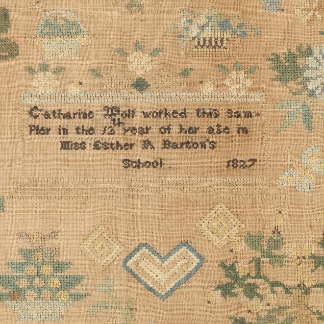 Catharine Wolf's 1827 Needlework Sampler from Esther R. Barton's School
