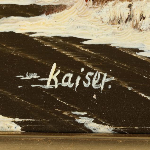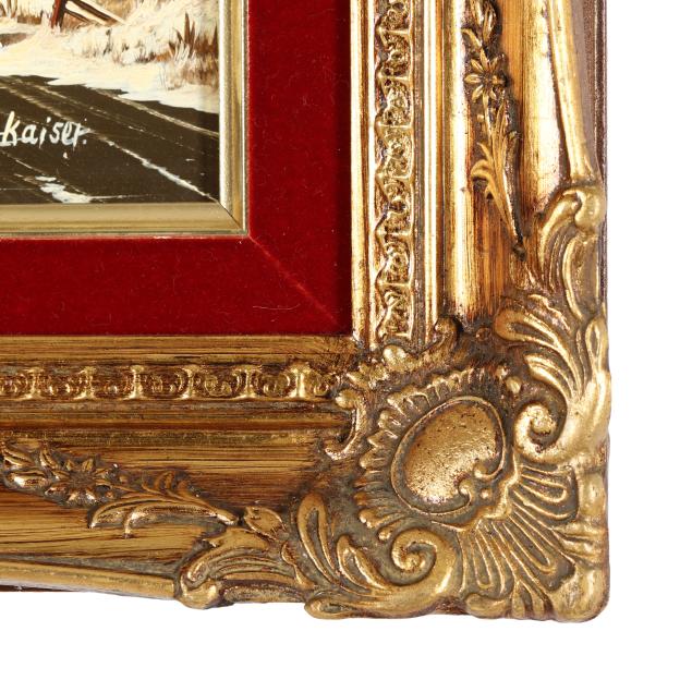Oil on panel, signed at lower right, presented in a period gilt frame with claret velvet liner.