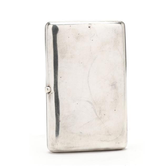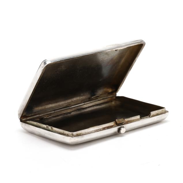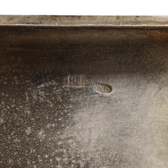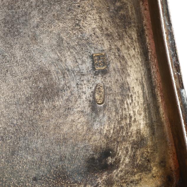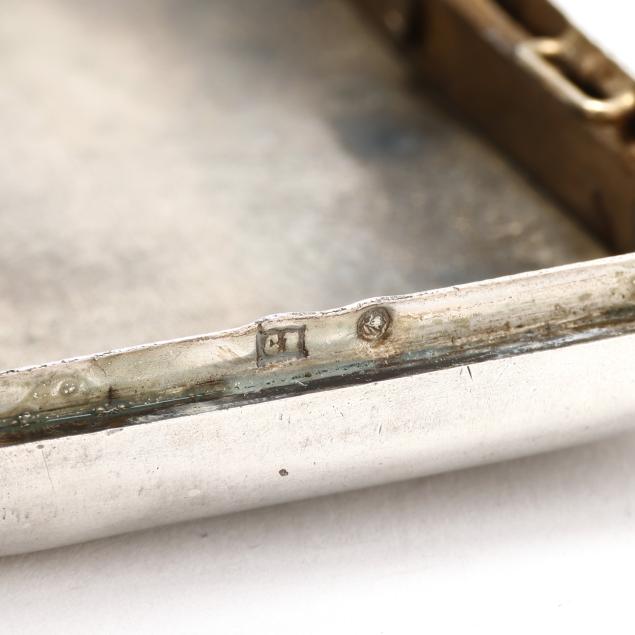 1896-1908 period kokoshnik mark, 84 zolotniki, "CH" maker's mark in conforming rectangular punch, rectangular form with hinged cover featuring a botanical engraving, no monogram.