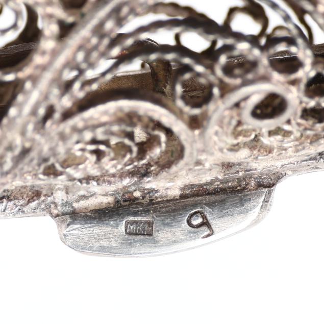 With "MK1-" alloy mark, featuring allover foliate filigree decoration and a turquoise mounted enclosure, not monogrammed.