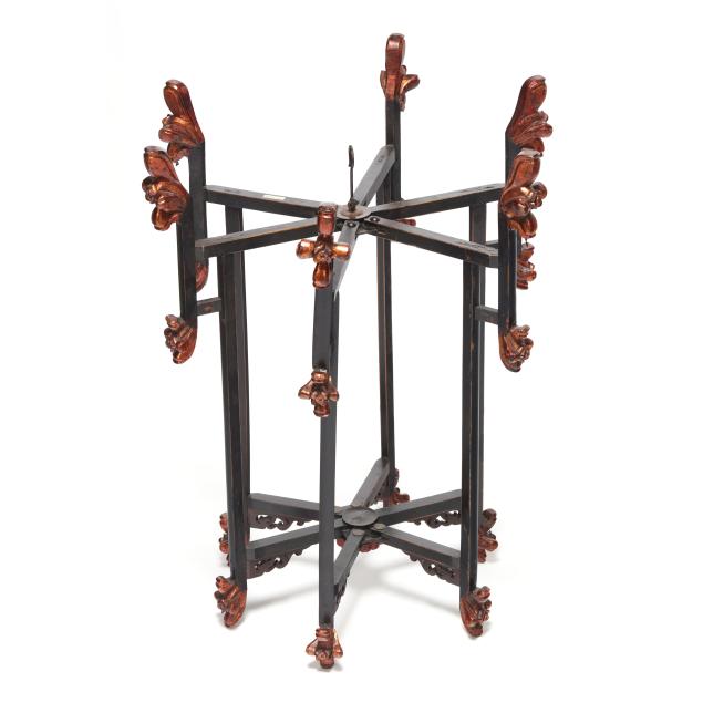 The smaller with scattered scuffs and minor paint loss, one break and repair to foo lion ornament; the larger with minor wear and scattered scuffs, missing tassel element to top row of floral ornament; both expand and close smoothly.