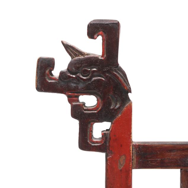 20th century, the wooden frames each with fretwork and carved dragon details.