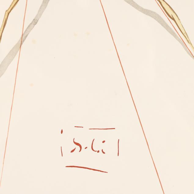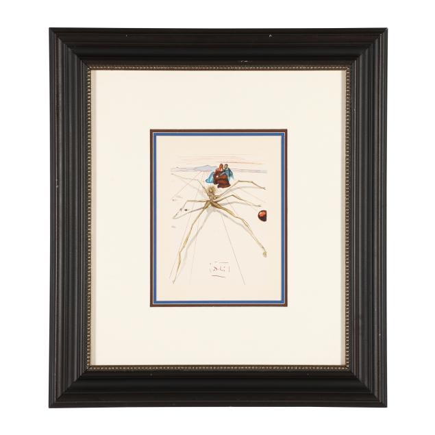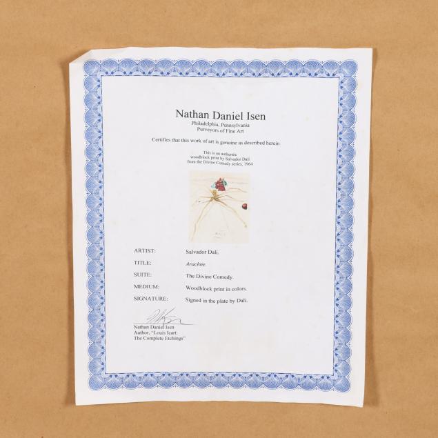 Wood engraving in colors, 1964, with red ink stamp lower center, "Purgatory Canto 12" from Dalí's