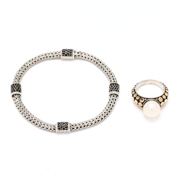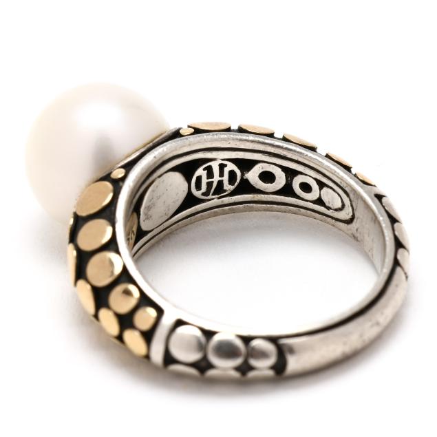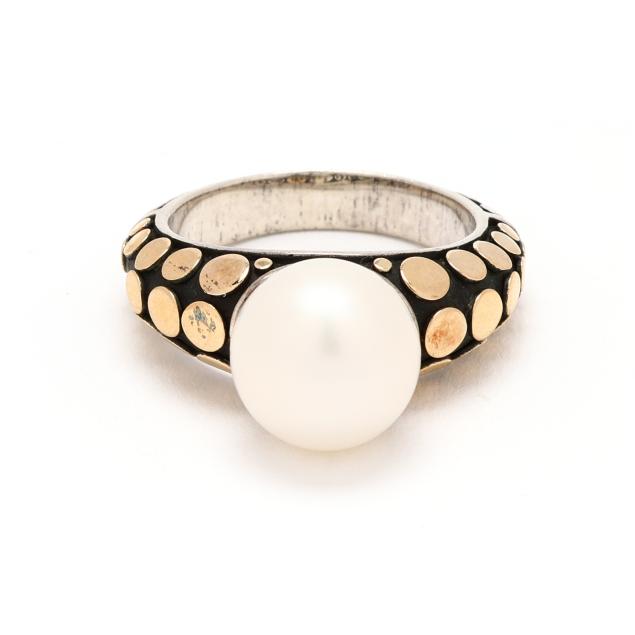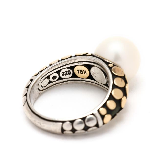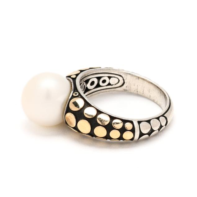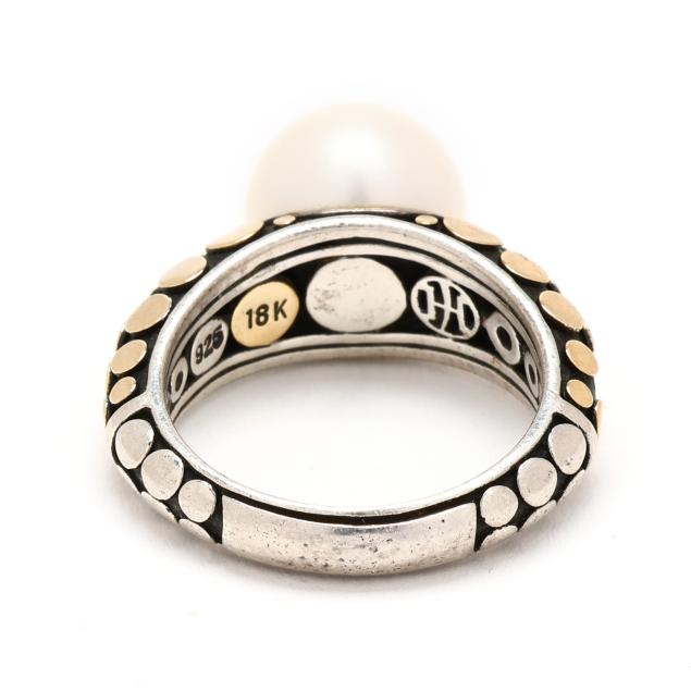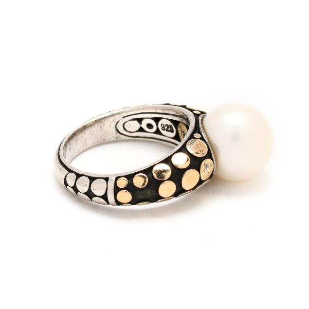 Dot collection ring, set to the center with a single round pearl (10.75mm), with gold dots to shoulders and silver dots to shank, stamped 925 18K and with maker's mark (ring size 7) (deficient one gold dot); and a sterling silver
