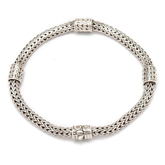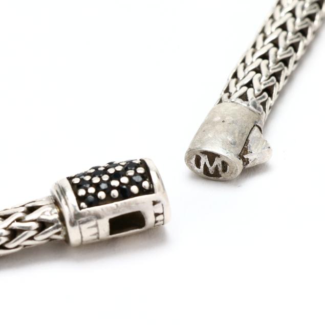 Icon Chain bracelet with three stations pavé set with round cut sapphires, completed with pavé set round cut sapphire pusher clasp, stamped 925 and with maker's mark (7mm x 8 in.).