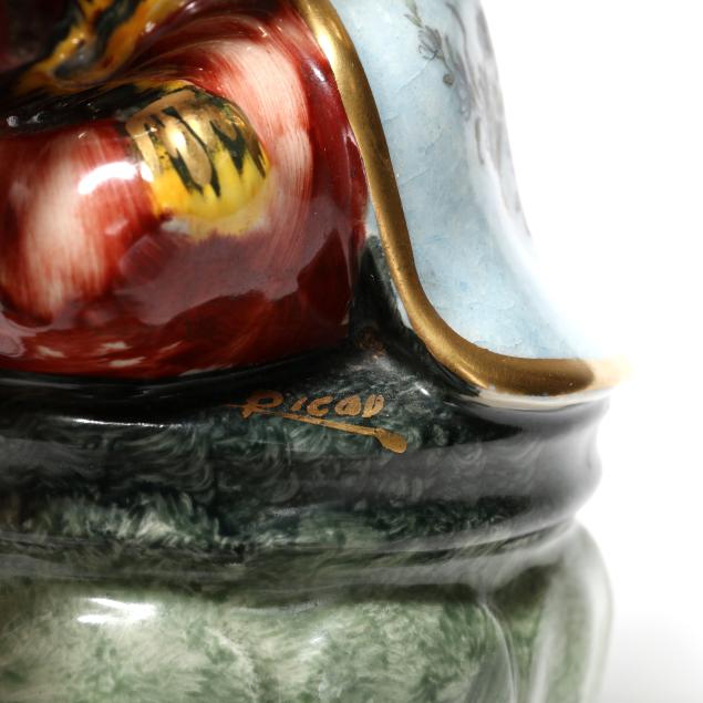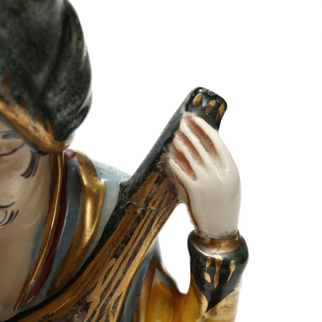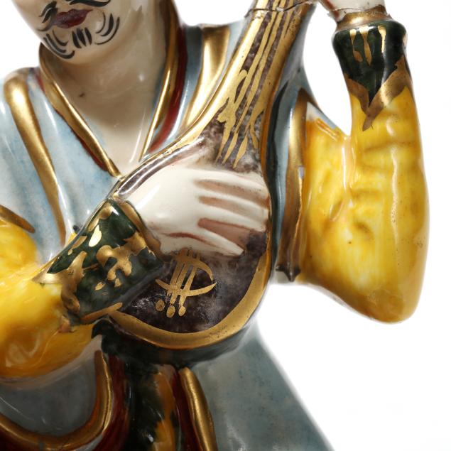 Working at time of evaluation; male figure with break and repair to arm and guitar of male figure.