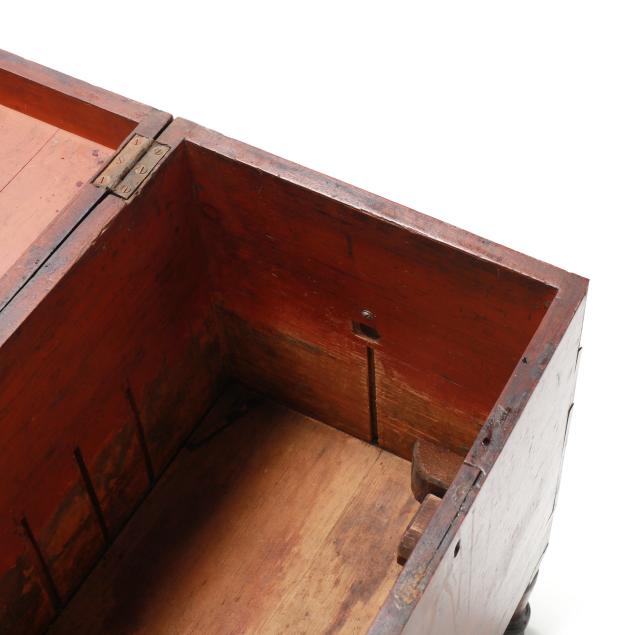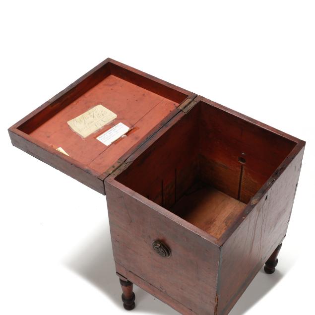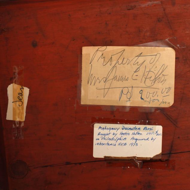 From the Estate of the late Jean Bainbridge, Halifax, Virginia As found estate condition; case with staining, wear and veneer loss; interior lacking dividers; missing lock/clasp/key.