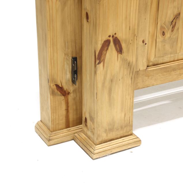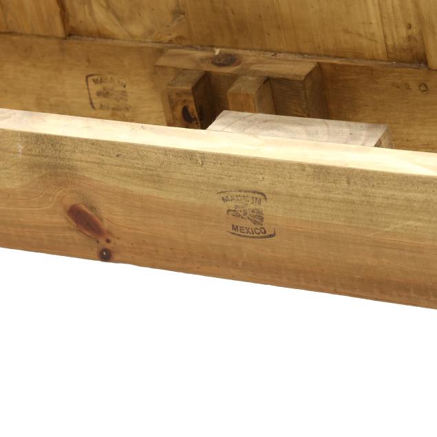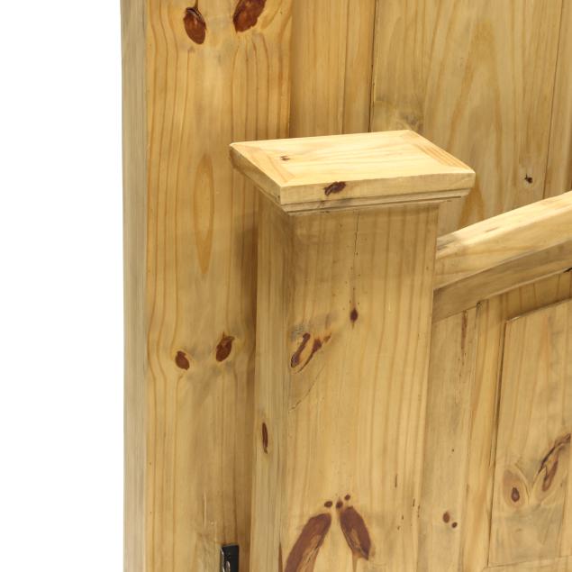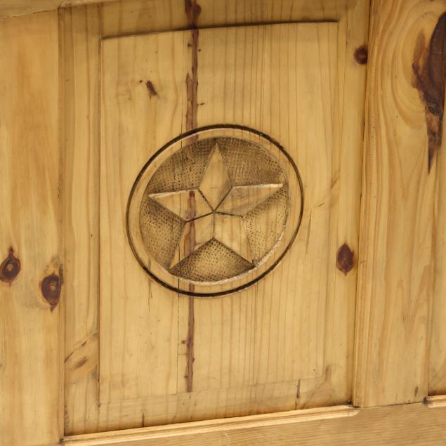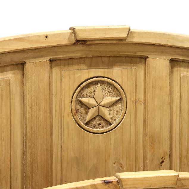 Contemporary, arched headboard and footboard with conforming raised panels and central carved star, with wood hook-rails, marked Made in Mexico.