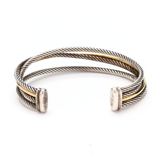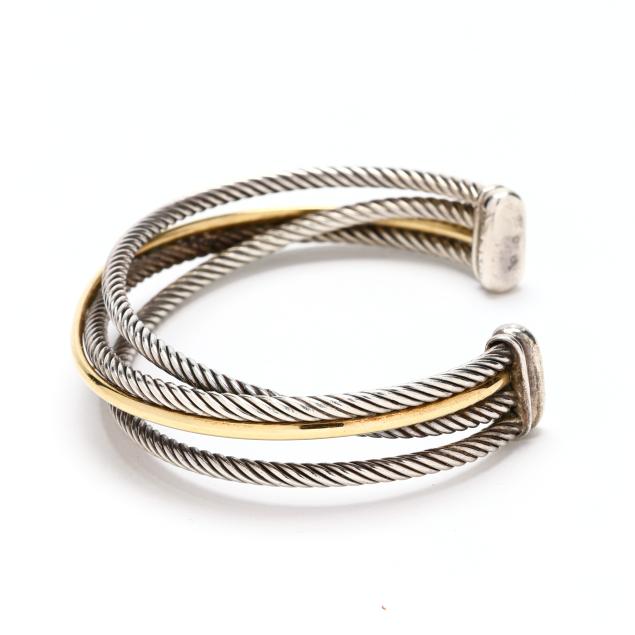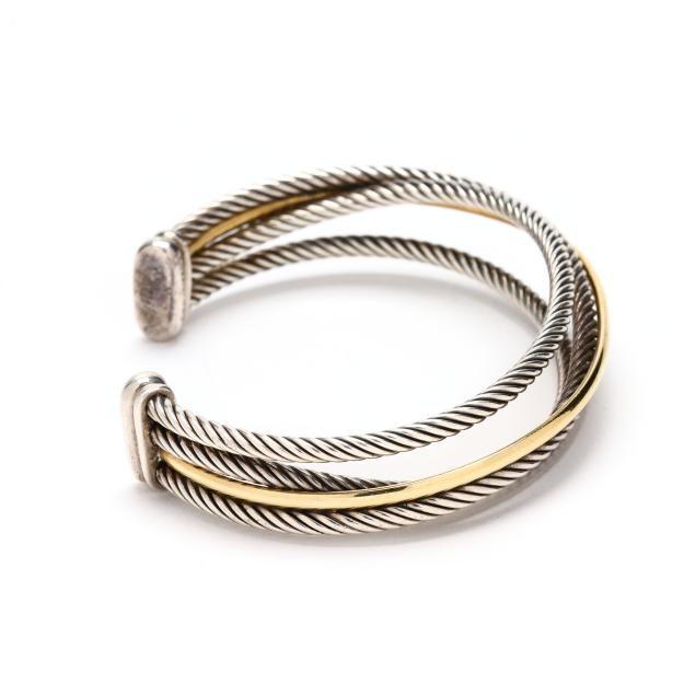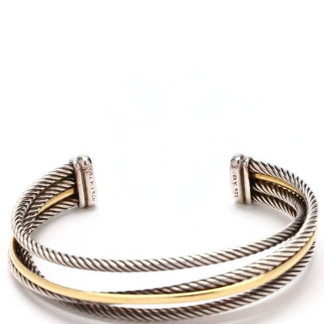 and polished gold crossover, stamped D.Y. 925 / 925 1/4 750.