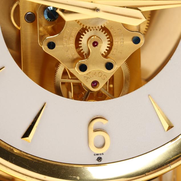 Switzerland, late 1940s-1950s, (15) jewel movement, serial no. 26064, white round dial signed within a gilt brass and glass case, lock for pendulum to exterior of case.