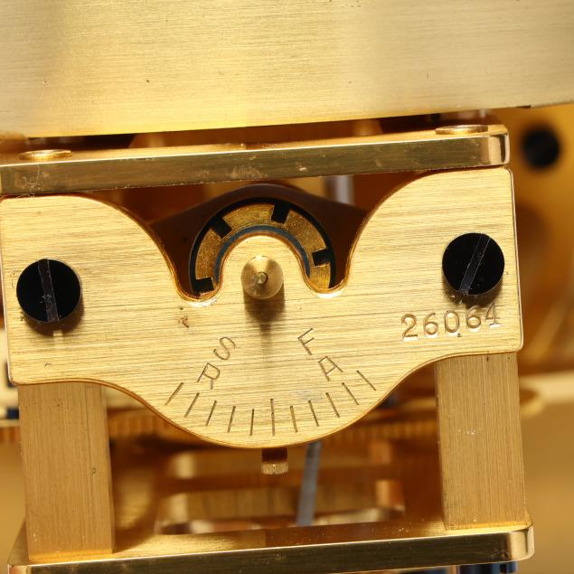 Working at time of evaluation; light surface wear to brass case; small area of surface scratches to bottom right foot.
