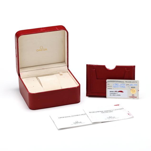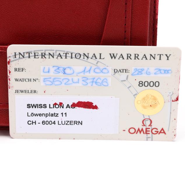 Accompanied by Omega presentation box, papers, warranty card dated 28-6-2000, and an extra link.
