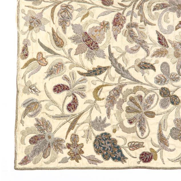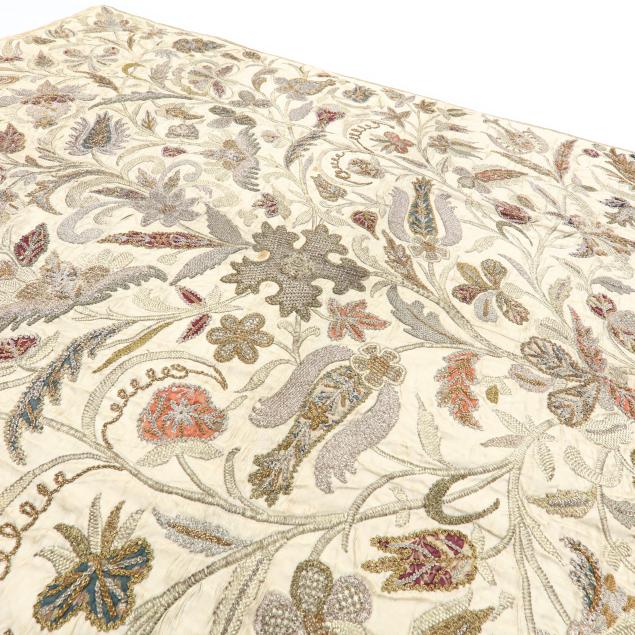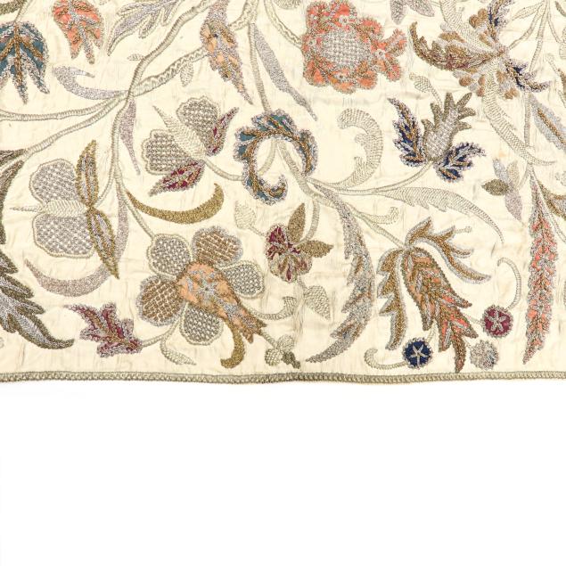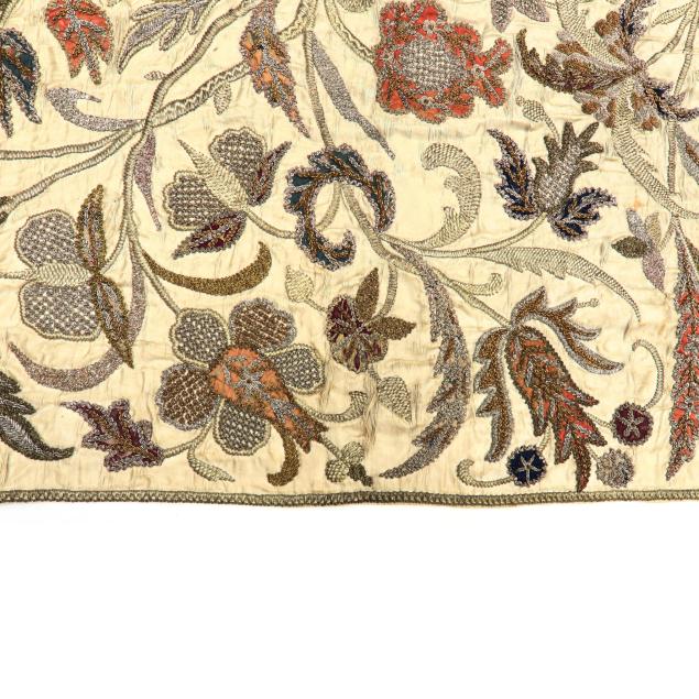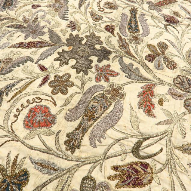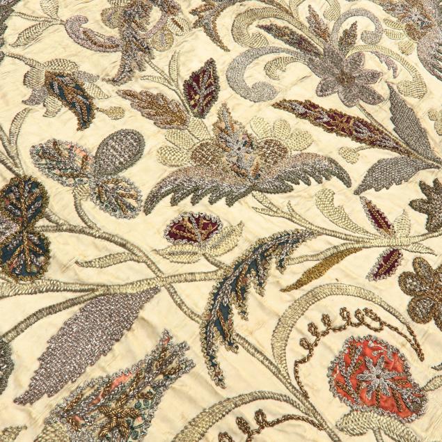 This piece was likely made for the Western market or as a commission, probably a bed hanging and part of a larger suite. This silk and goldwork translation of a traditional cotton palampore design is a vibrant specimen of textile history, and the elevation of an iconic motif to something one of a kind.