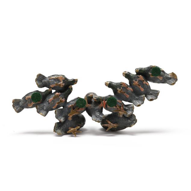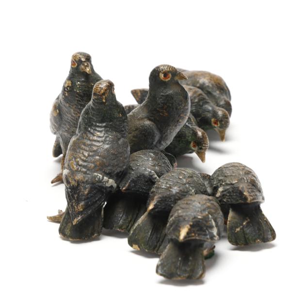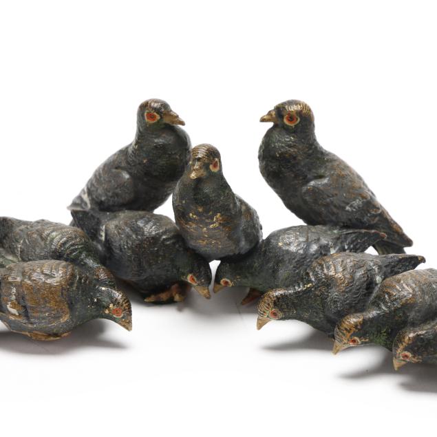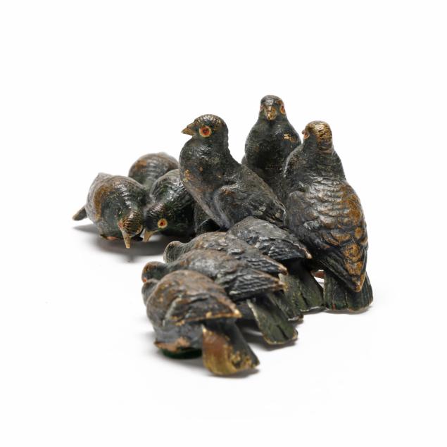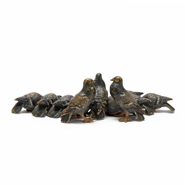 Likely Austrian, late 19th-early 20th century, hand-painted bronze grouping of (11) pigeons, unmarked.