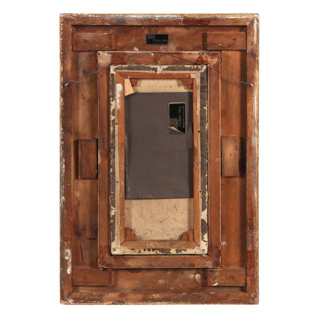 Oil on canvas, signed at lower left, presented in a giltwood frame with gallery plaque affixed at lower center.