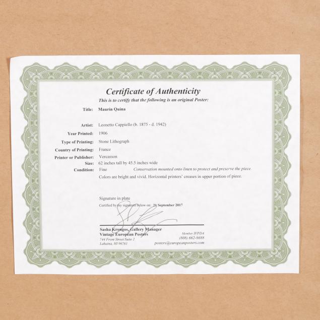 Lithograph in colors, 1906, printed by P. Vercasson & Cie., Paris, framed.