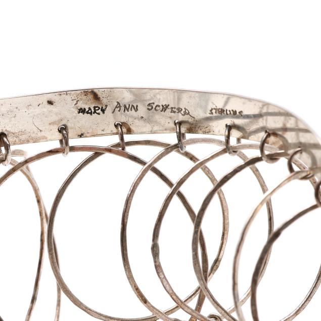 As a noted designer, Mary Ann Scherr's work can be found in the permanent collections of major museums including the Vatican Museum of Art, Metropolitan Museum of Art, National Museum of Art, and many others of note. Moving to North Carolina in 1989, she shared ownership in Raleigh's Roundabout Art Collective; her designs have been featured in the Gregg Museum of Art and Design, the Mahler, the Carolina Designer Craftsmen Guild, and the Penland School of Crafts.
