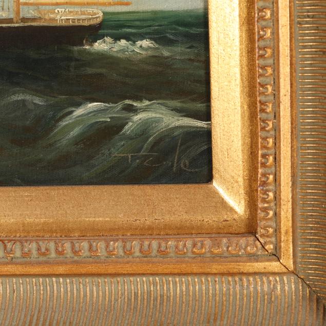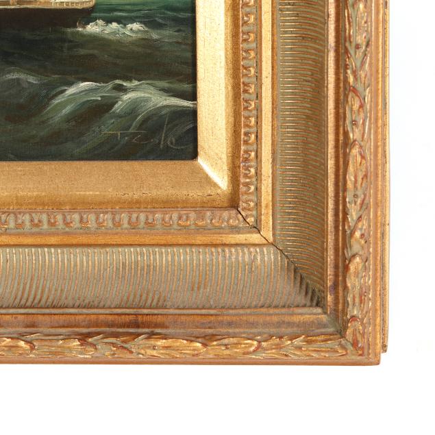 Oil on canvas, signed at lower right, presented in a cove molded giltwood frame.