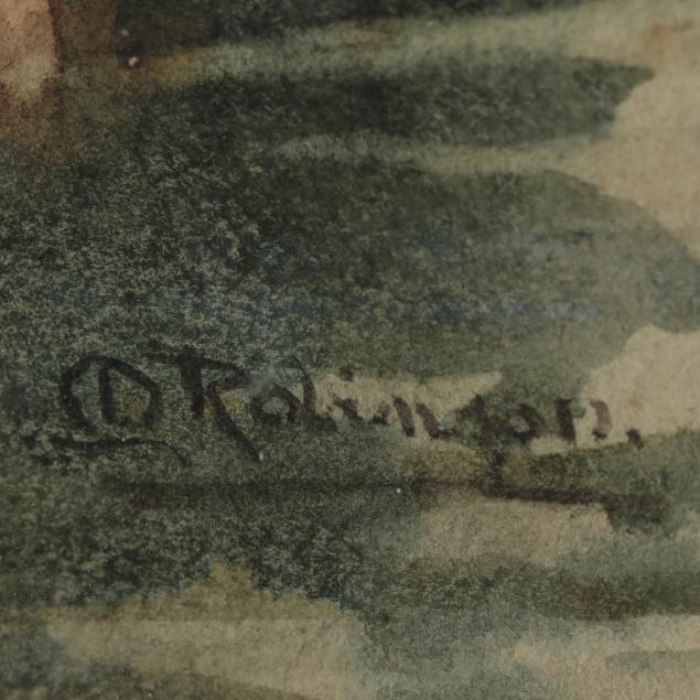 Watercolor on paper, signed at lower left, matted and framed below glass.