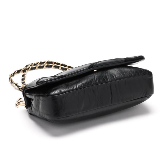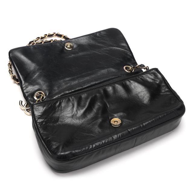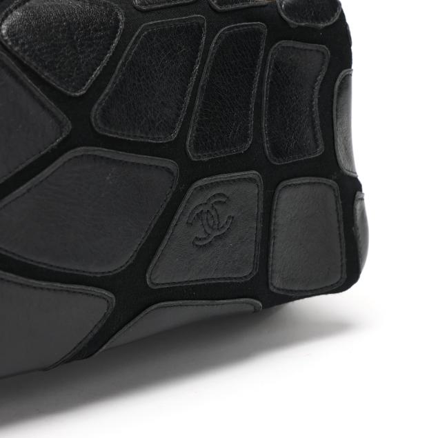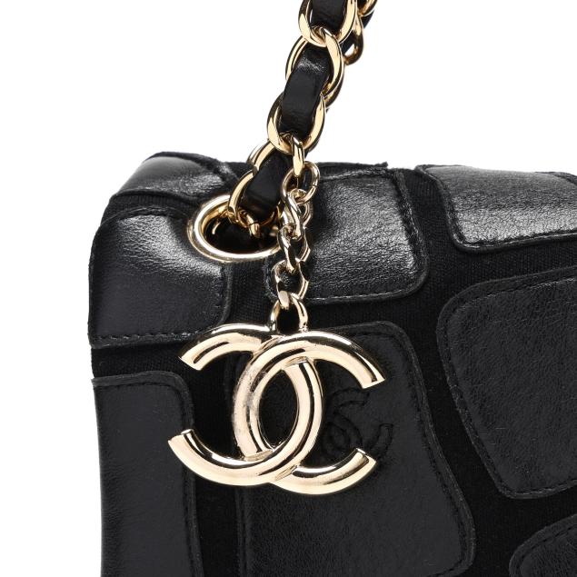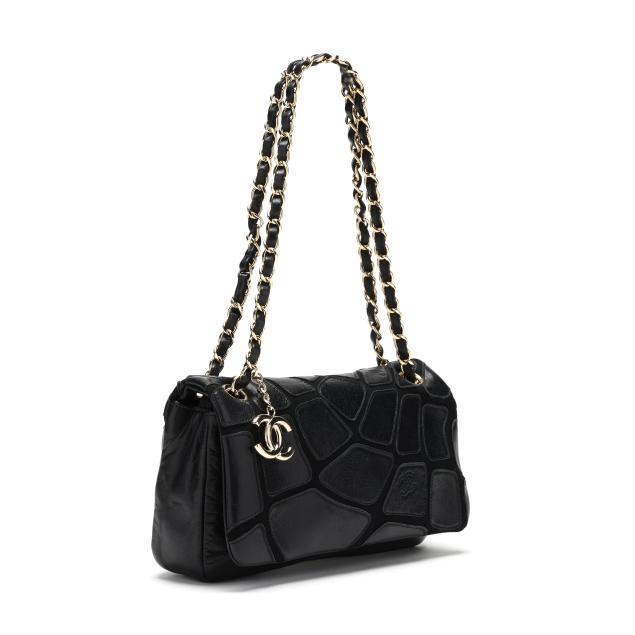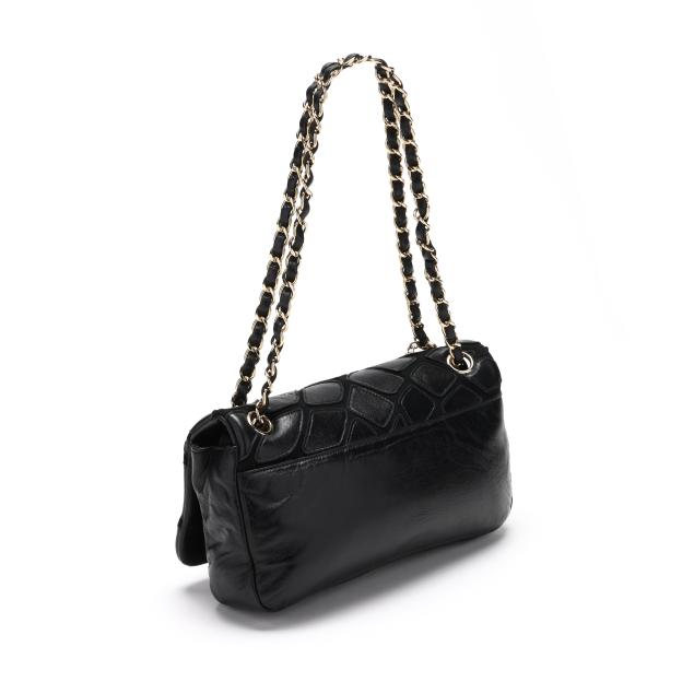 Scales design, with gold-tone hardware, double chain handles threaded with leather and suspending a CC logo charm, and flap with signed magnetic clasp, the interior in fabric with side zipper pocket and signed tag stating made in Italy.