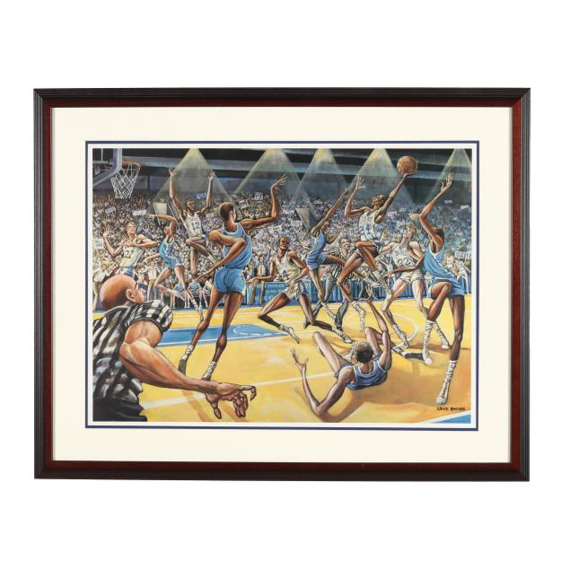 Barnes is unique in his exceptional skill as an athlete and an artist, and for his union of both through the depiction of everyday life. North Carolina landmarks such as front porches, pool halls, and sports scenes often appear in his work.