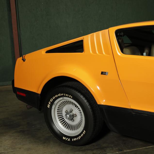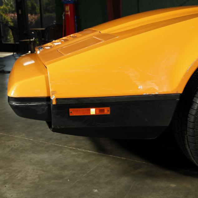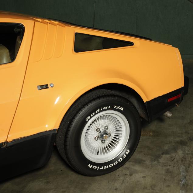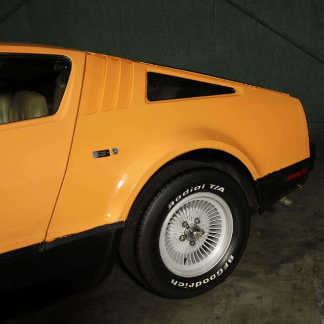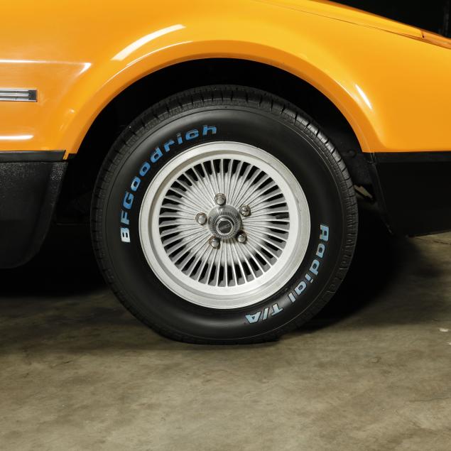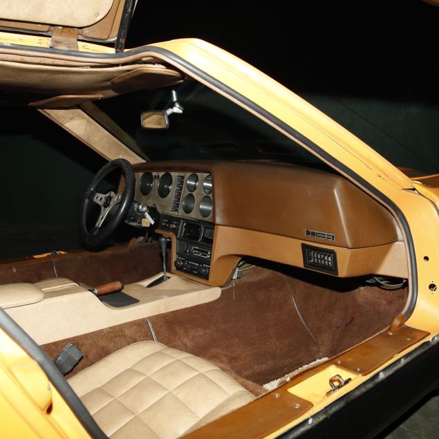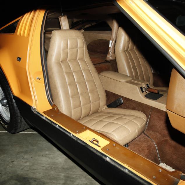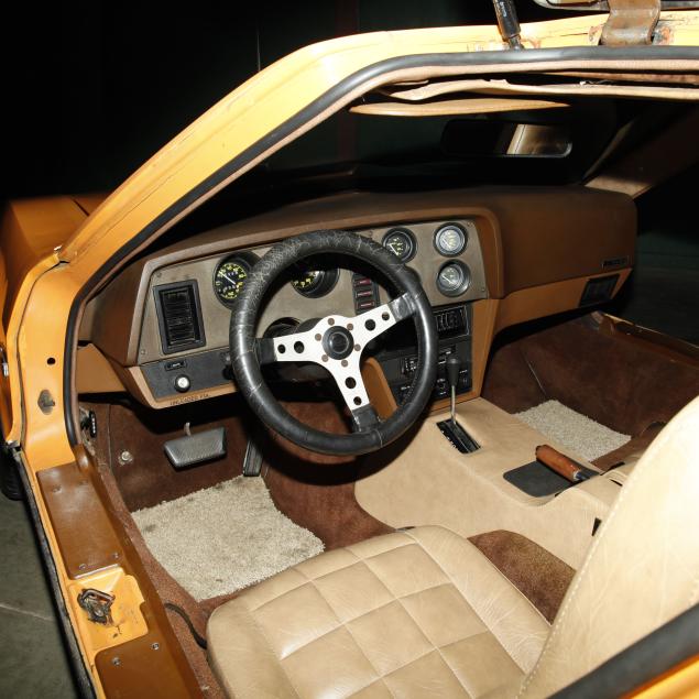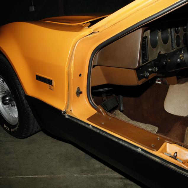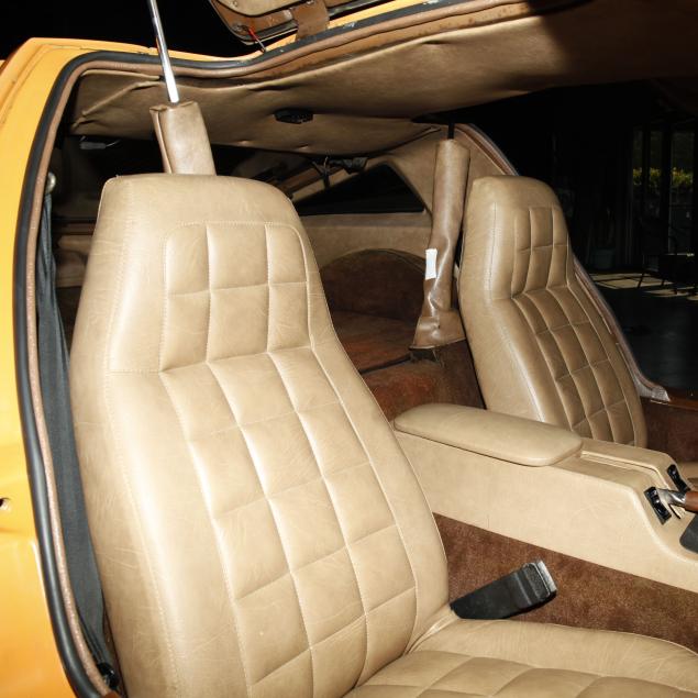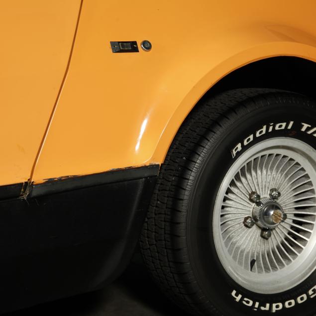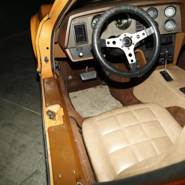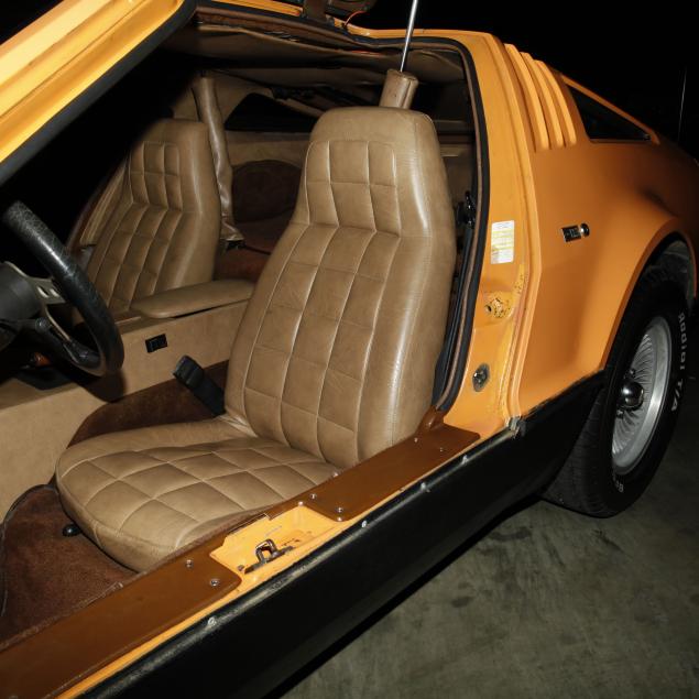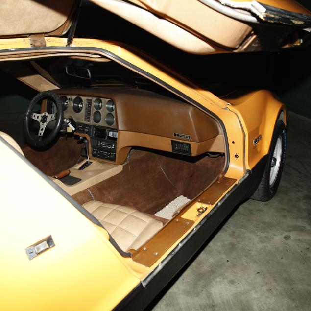 with a Ford 351 cubic inch Windsor engine, and a three speed automatic transmission. The car was built and designed to called a safety vehicle. Enhanced steel frame around the cockpit, and fuel tank, along with impact absorbing bumpers, provided greater accident protection than was found in other vehicles. The gull wing doors, and pop up headlights operate from a compressor system and air hydraulics. With power steering, front disc brakes, and 15" aluminum mag wheels with correct BF Goodrich tires. The hydraulic door system was replaced with an air actuated system fr faster operation.