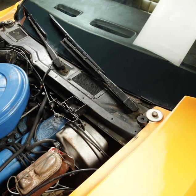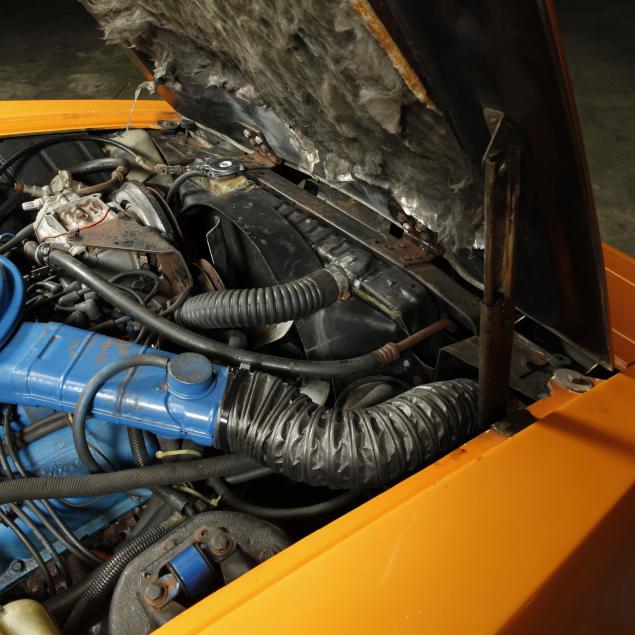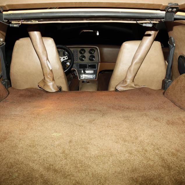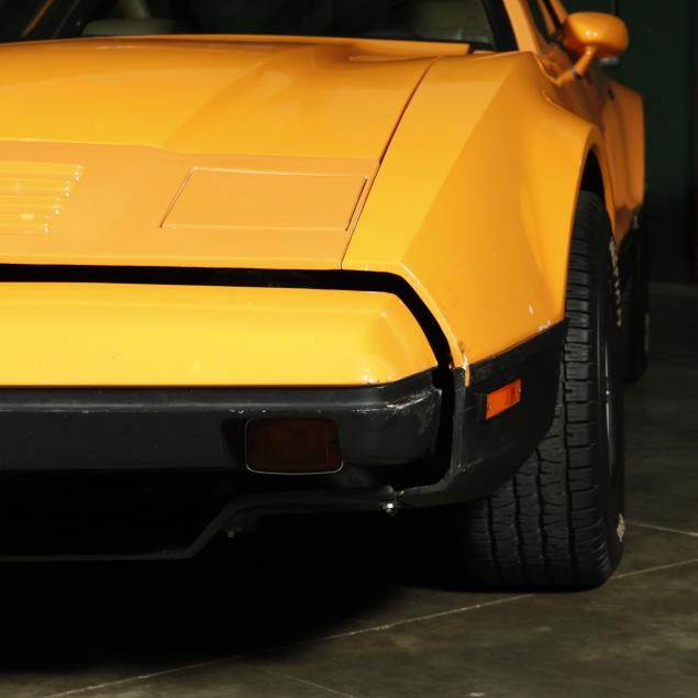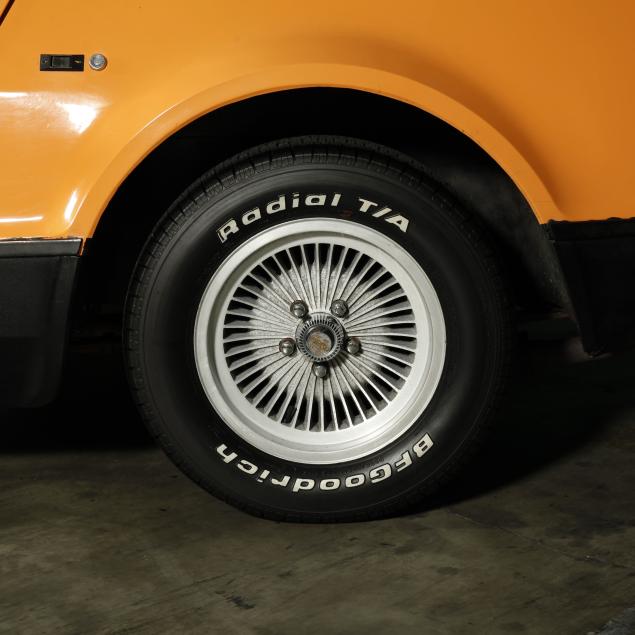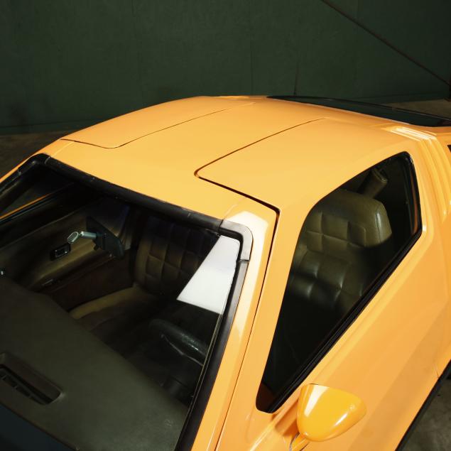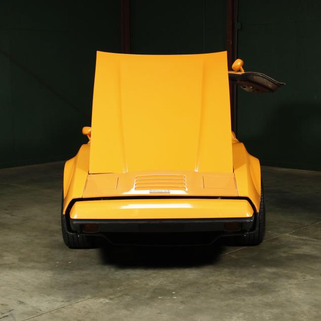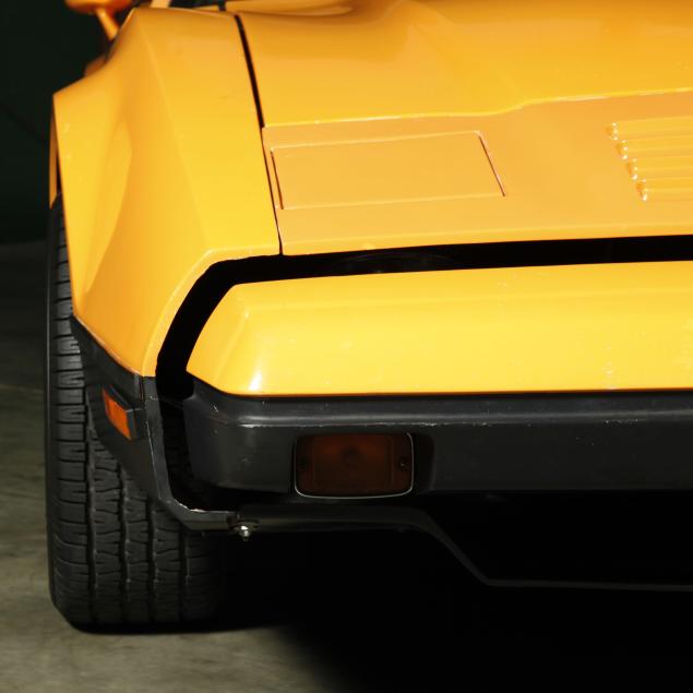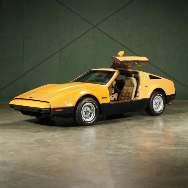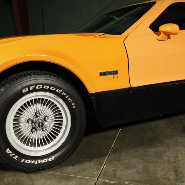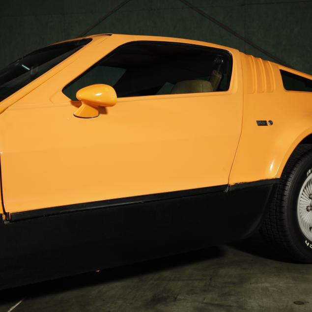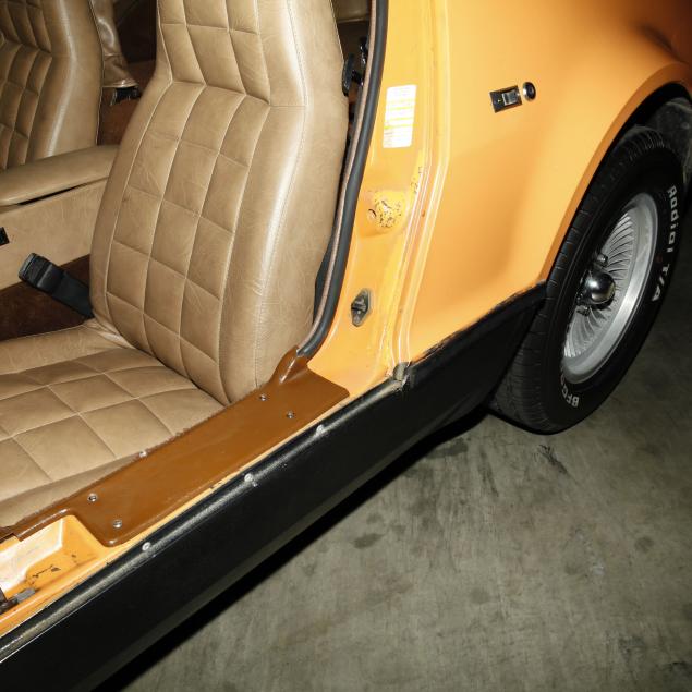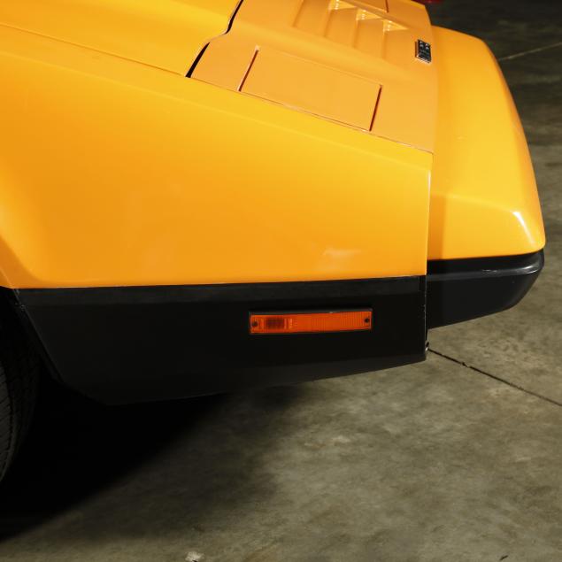 with a Ford 351 cubic inch Windsor engine, and a three speed automatic transmission. The car was built and designed to called a safety vehicle. Enhanced steel frame around the cockpit, and fuel tank, along with impact absorbing bumpers, provided greater accident protection than was found in other vehicles. The gull wing doors, and pop up headlights operate from a compressor system and air hydraulics. With power steering, front disc brakes, and 15" aluminum mag wheels with correct BF Goodrich tires. The hydraulic door system was replaced with an air actuated system fr faster operation.