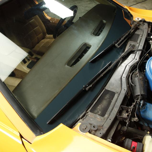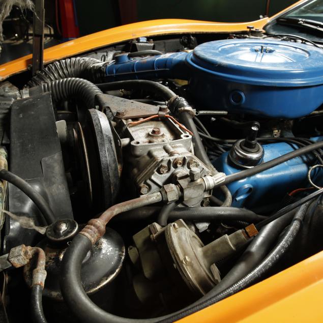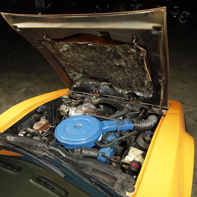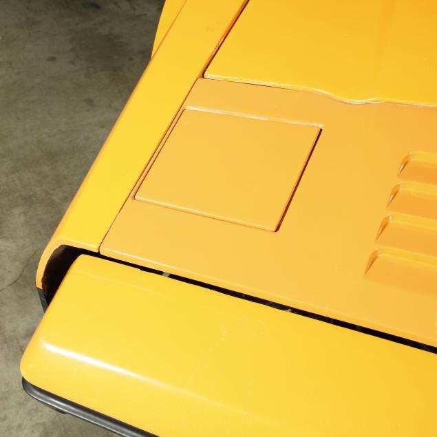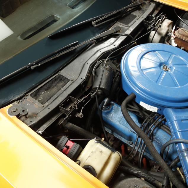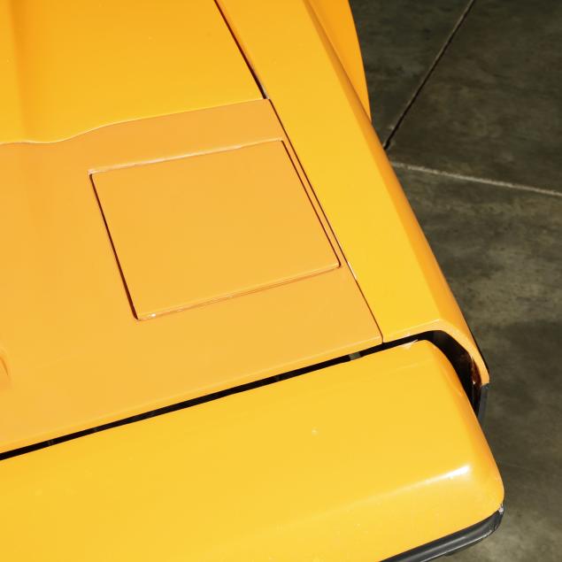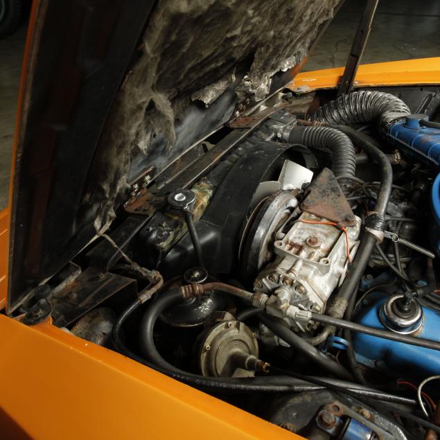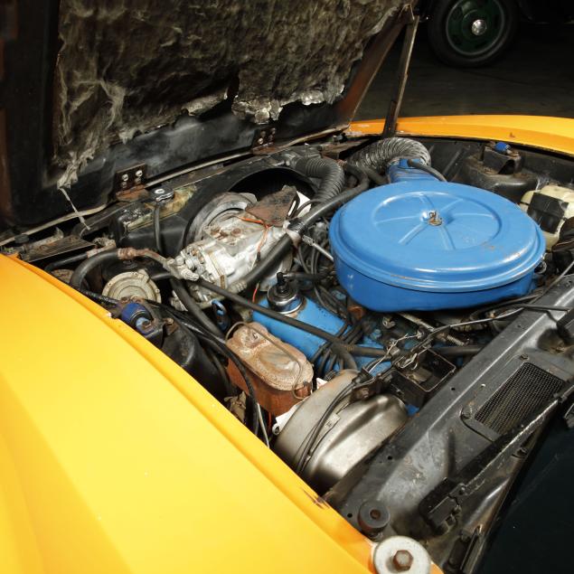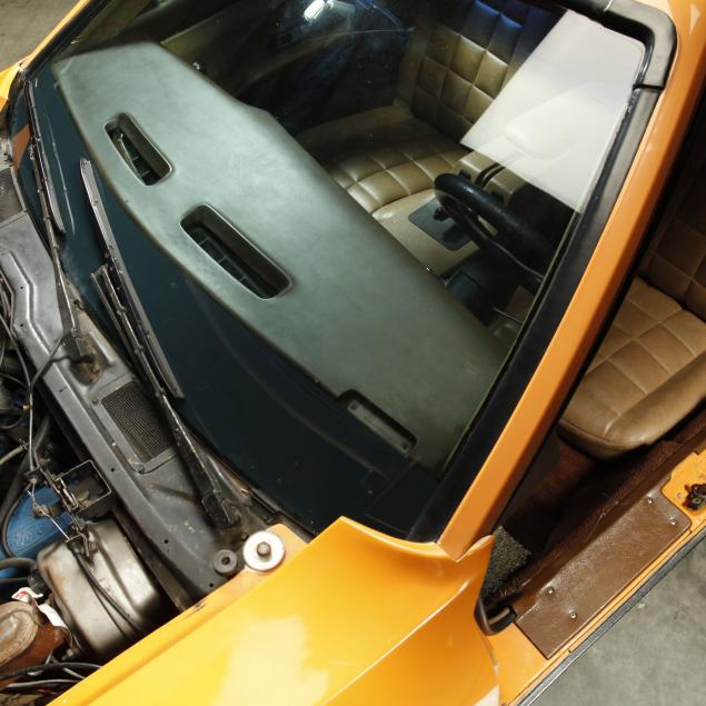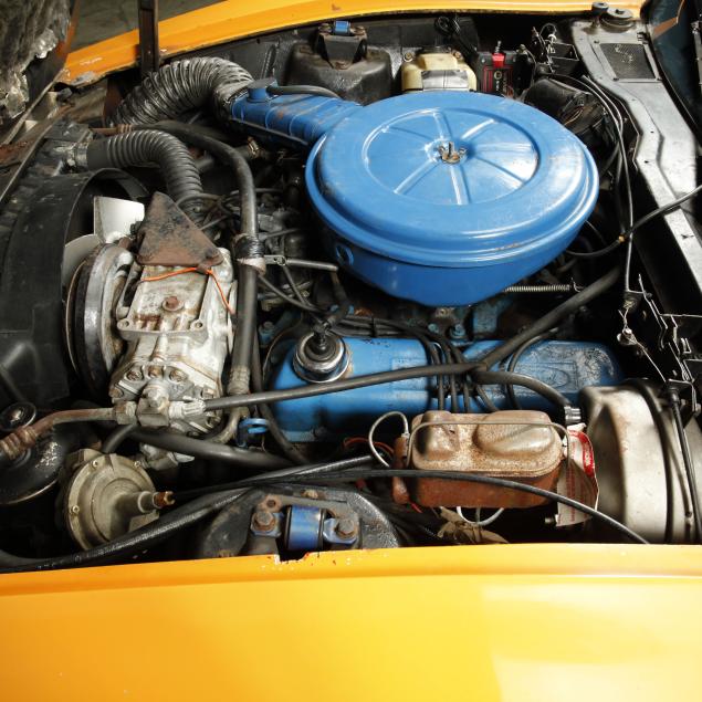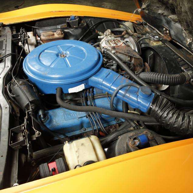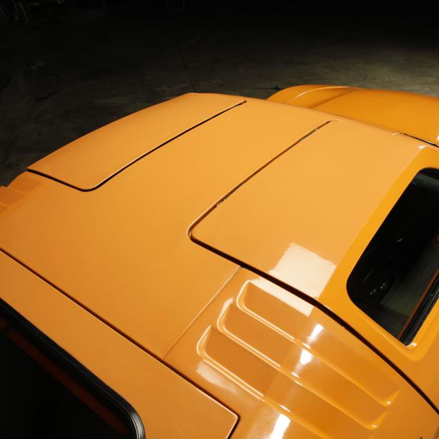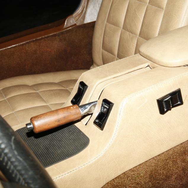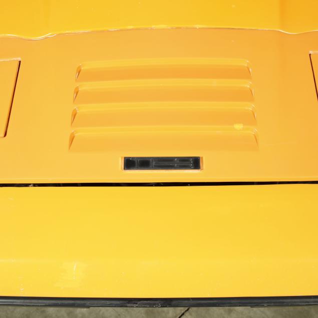 with a Ford 351 cubic inch Windsor engine, and a three speed automatic transmission. The car was built and designed to called a safety vehicle. Enhanced steel frame around the cockpit, and fuel tank, along with impact absorbing bumpers, provided greater accident protection than was found in other vehicles. The gull wing doors, and pop up headlights operate from a compressor system and air hydraulics. With power steering, front disc brakes, and 15" aluminum mag wheels with correct BF Goodrich tires. The hydraulic door system was replaced with an air actuated system fr faster operation.