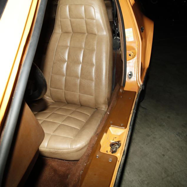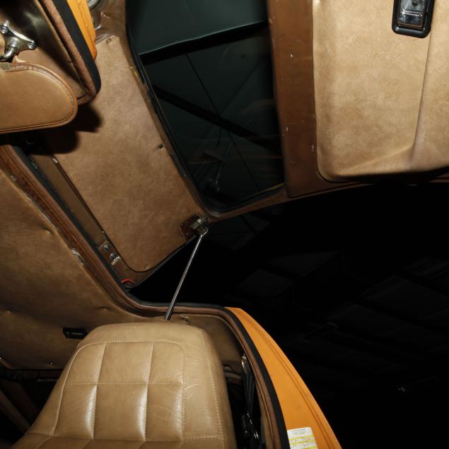 Exterior in Safety Orange, the fiberglass and acrylic panels were color impregnated from the factory. The interior is tan, with brown vinyl trim.